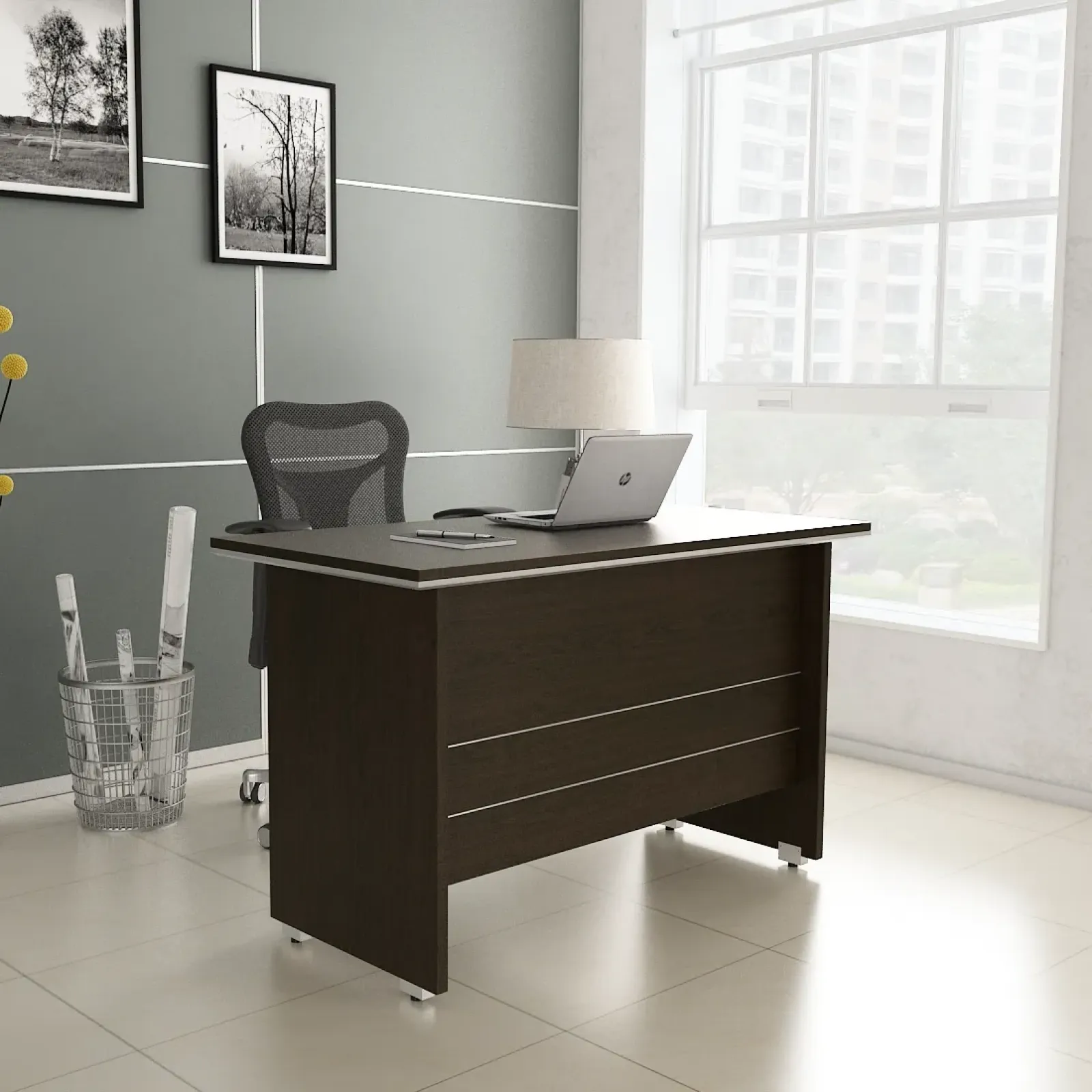 | TOP:- | 30mm thick tabletop made up of 18mm thick pre-laminated particle board with 12mm thick thin PVC foil wrapped decorative profile made up of MDF fixed along all the edges from the bottom side which provide decorative waterfall edge profile to top with twin colour look the decorative trim to be connected at the angle of 45 degrees with each other. M.S. stiffener made up of M.S. rectangular Pipe of size 40X20X0.8 mm thickness is provided for extra support for the Top of length 1200mm and above. |