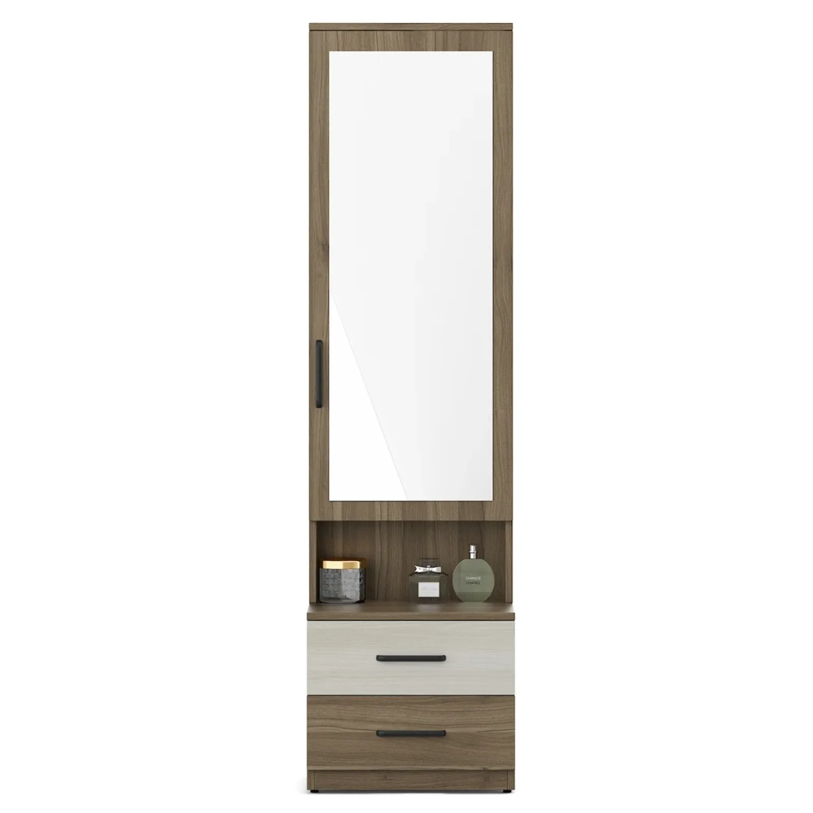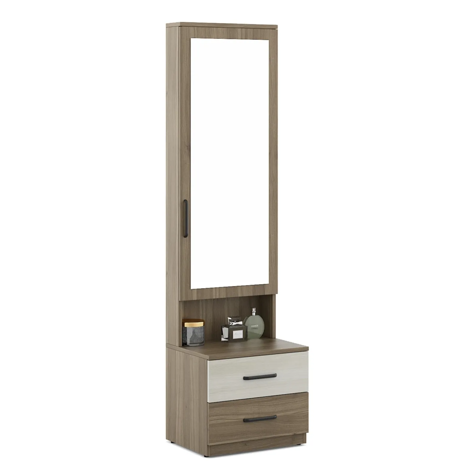 - Martin Dresser - Lyon Walnut is a seamless combination of utility and aesthetics, designed to elevate your personal grooming space. Featuring a sleek mirror, spacious drawers, and an ergonomic layout, it offers ample storage for cosmetics, accessories, and essentials.