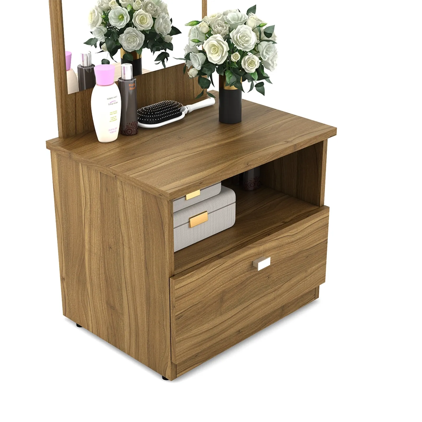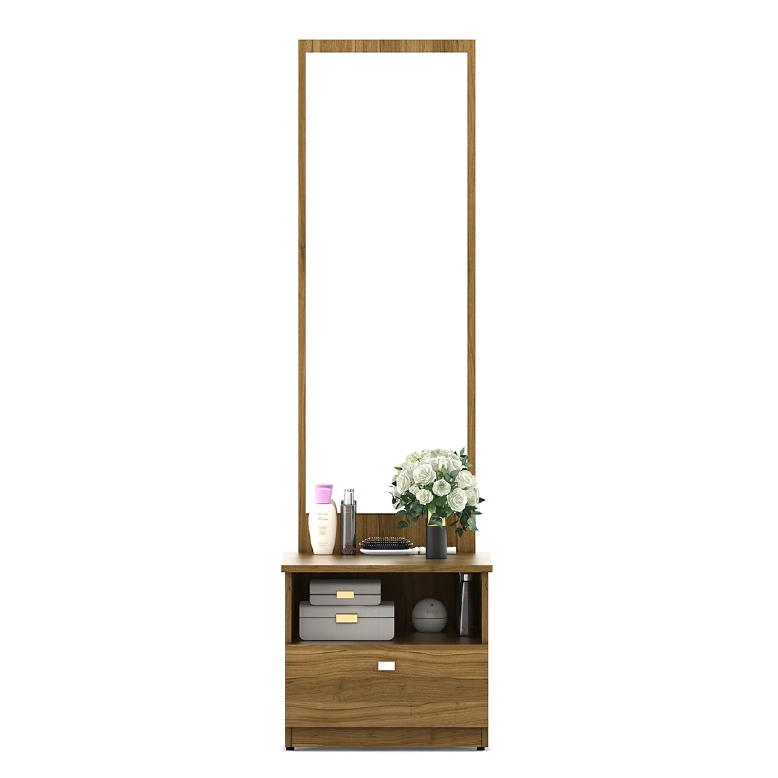 - Carnival Dresser Hd - Natural Teak is a seamless combination of utility and aesthetics, designed to elevate your personal grooming space. Featuring a sleek mirror, spacious drawers, and an ergonomic layout, it offers ample storage for cosmetics, accessories, and essentials.