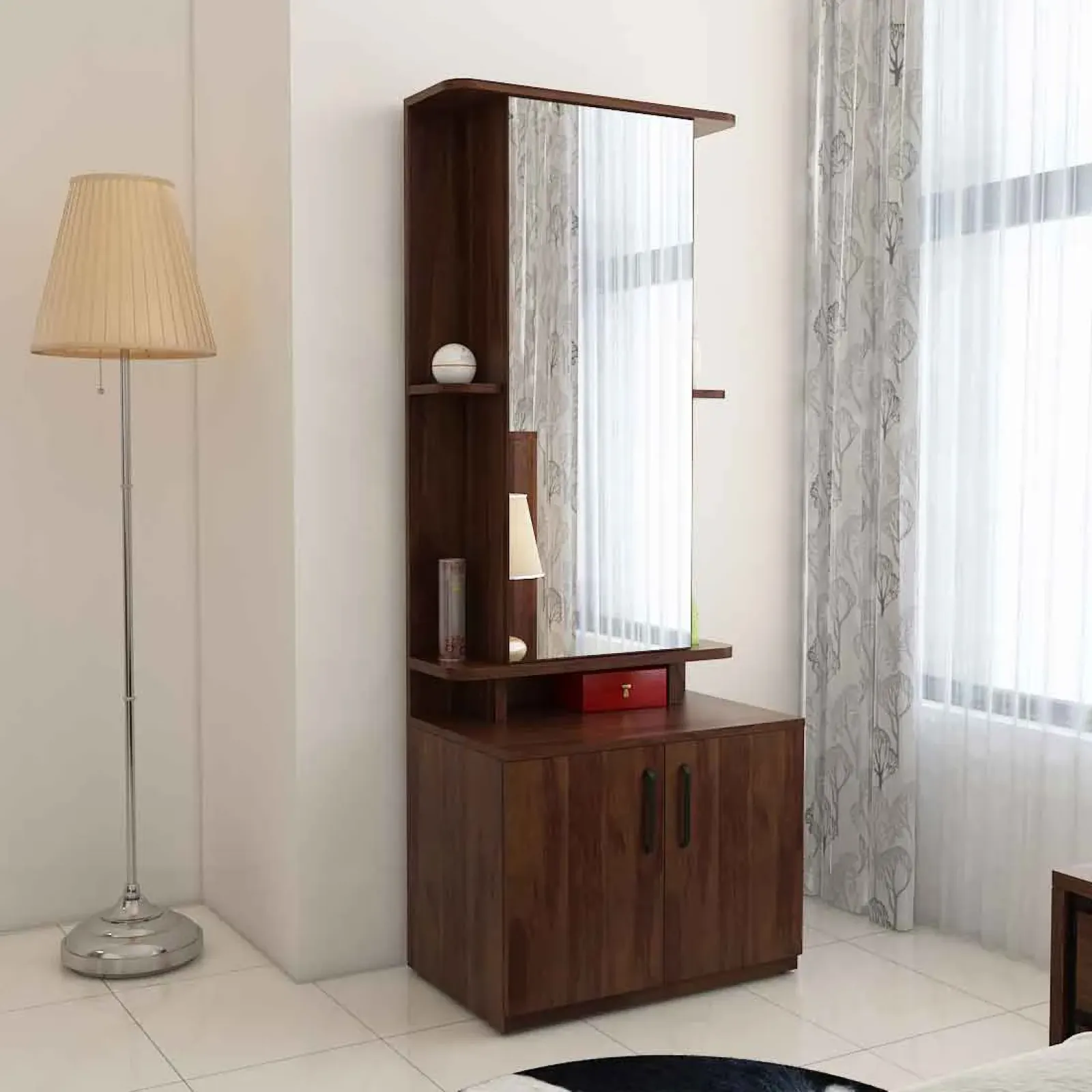 - Ora Dressing Table -sheesham is a seamless combination of utility and aesthetics, designed to elevate your personal grooming space. Featuring a sleek mirror, spacious drawers, and an ergonomic layout, it offers ample storage for cosmetics, accessories, and essentials.