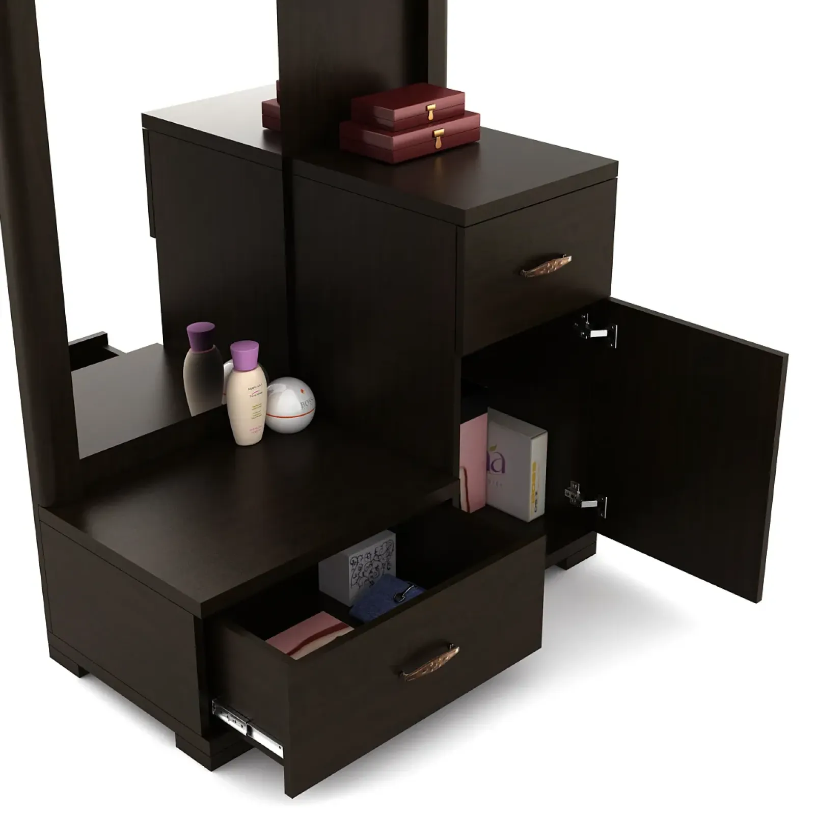 - Harmony Dressing Table - Vermount - Woodpore is a seamless combination of utility and aesthetics, designed to elevate your personal grooming space. Featuring a sleek mirror, spacious drawers, and an ergonomic layout, it offers ample storage for cosmetics, accessories, and essentials.