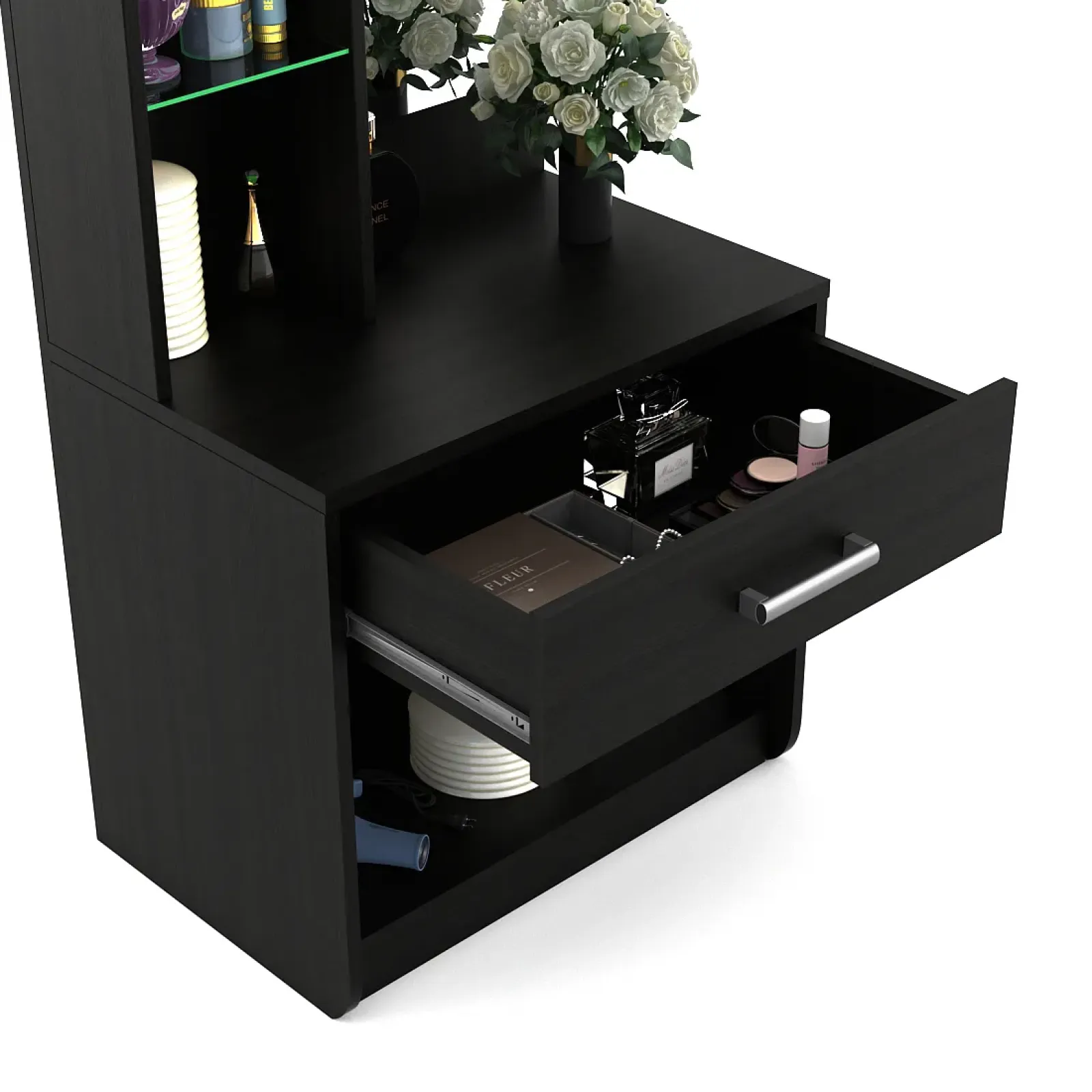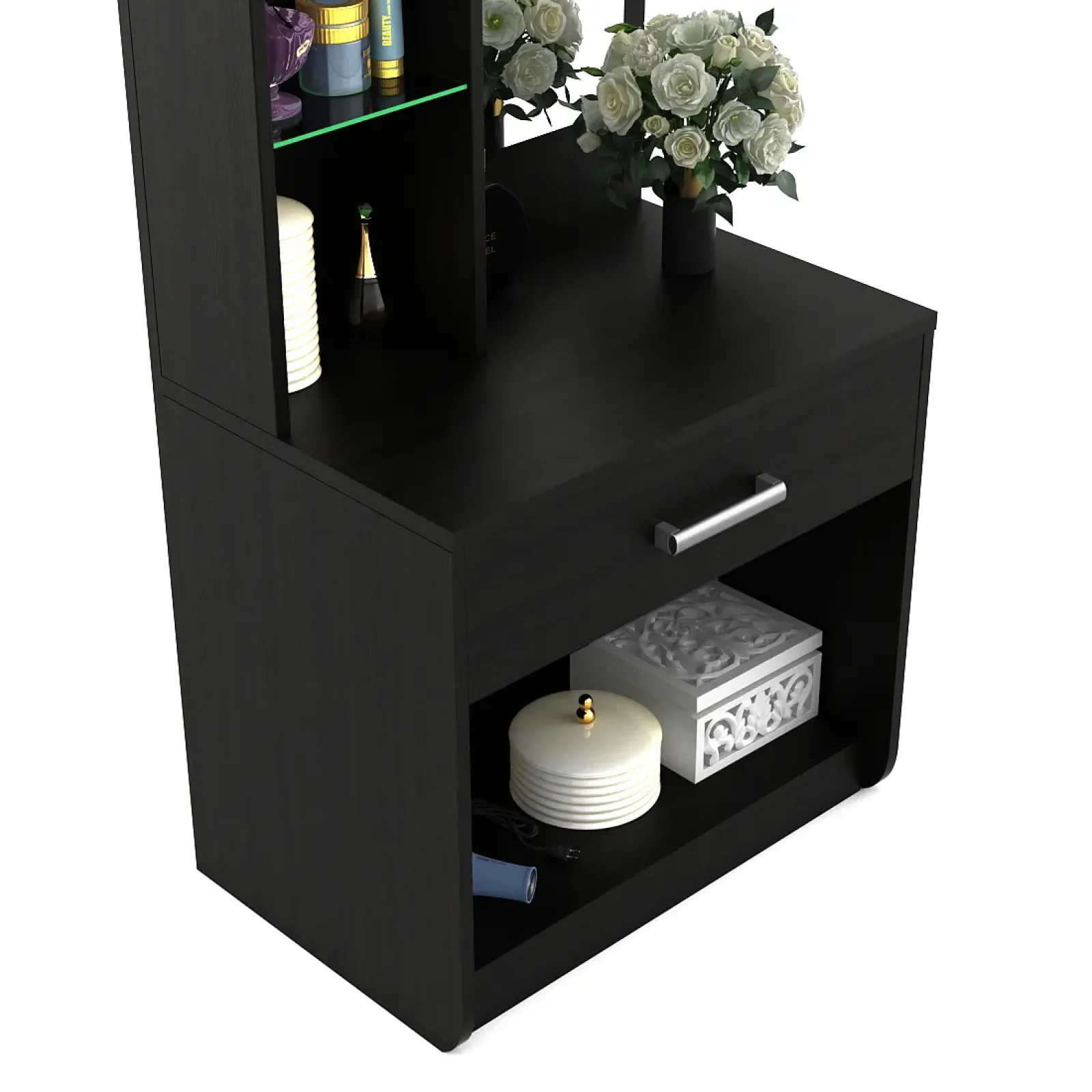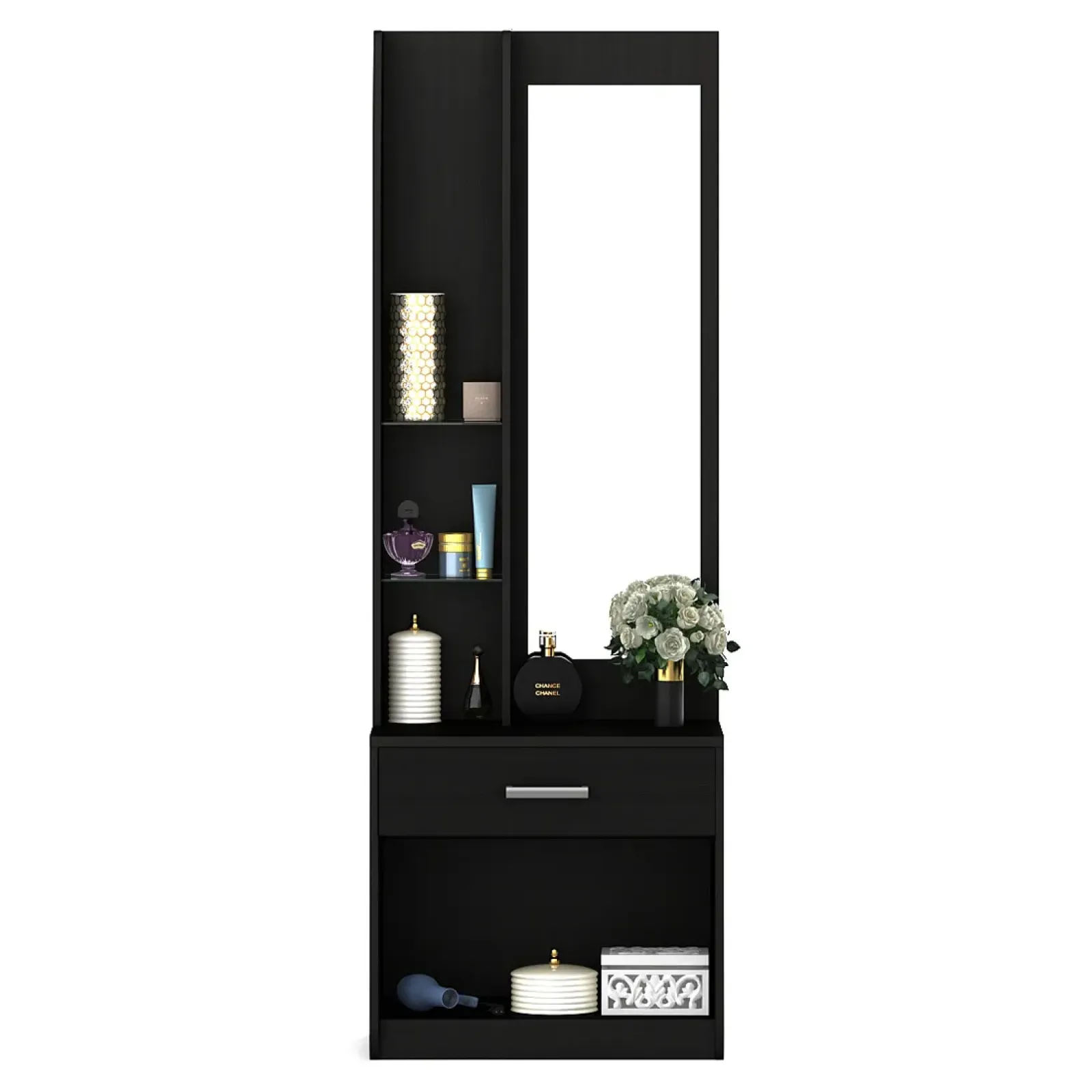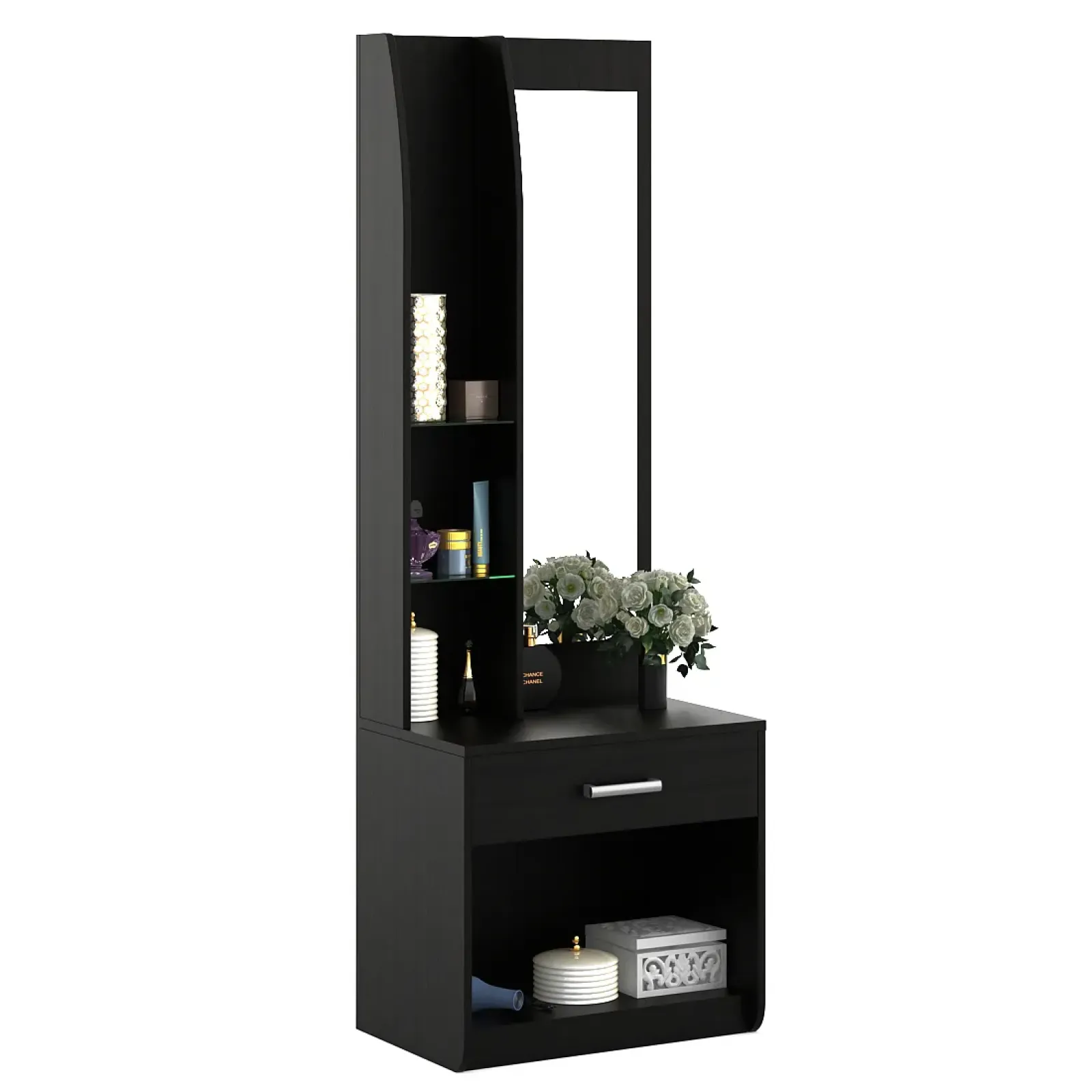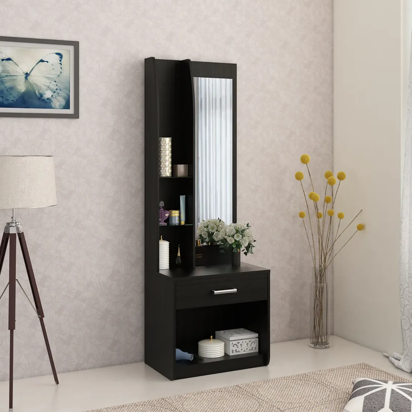- Imperial Dressing Table - Natural Wenge Woodpore is a seamless combination of utility and aesthetics, designed to elevate your personal grooming space. Featuring a sleek mirror, spacious drawers, and an ergonomic layout, it offers ample storage for cosmetics, accessories, and essentials.