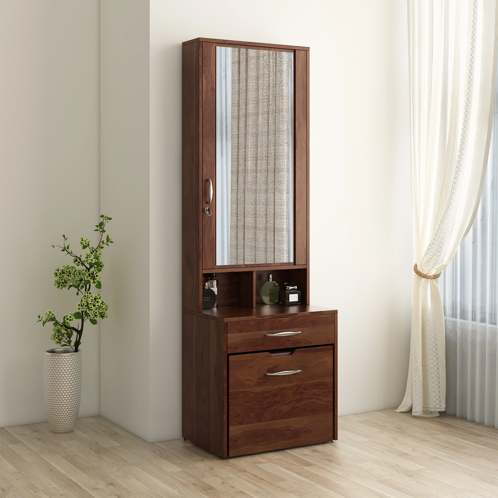 • Amber Dresser With Stool-sheesham is a seamless combination of utility and aesthetics, designed to elevate your personal grooming space. Featuring a sleek mirror, spacious drawers, and an ergonomic layout, it offers ample storage for cosmetics, accessories, and essentials.
