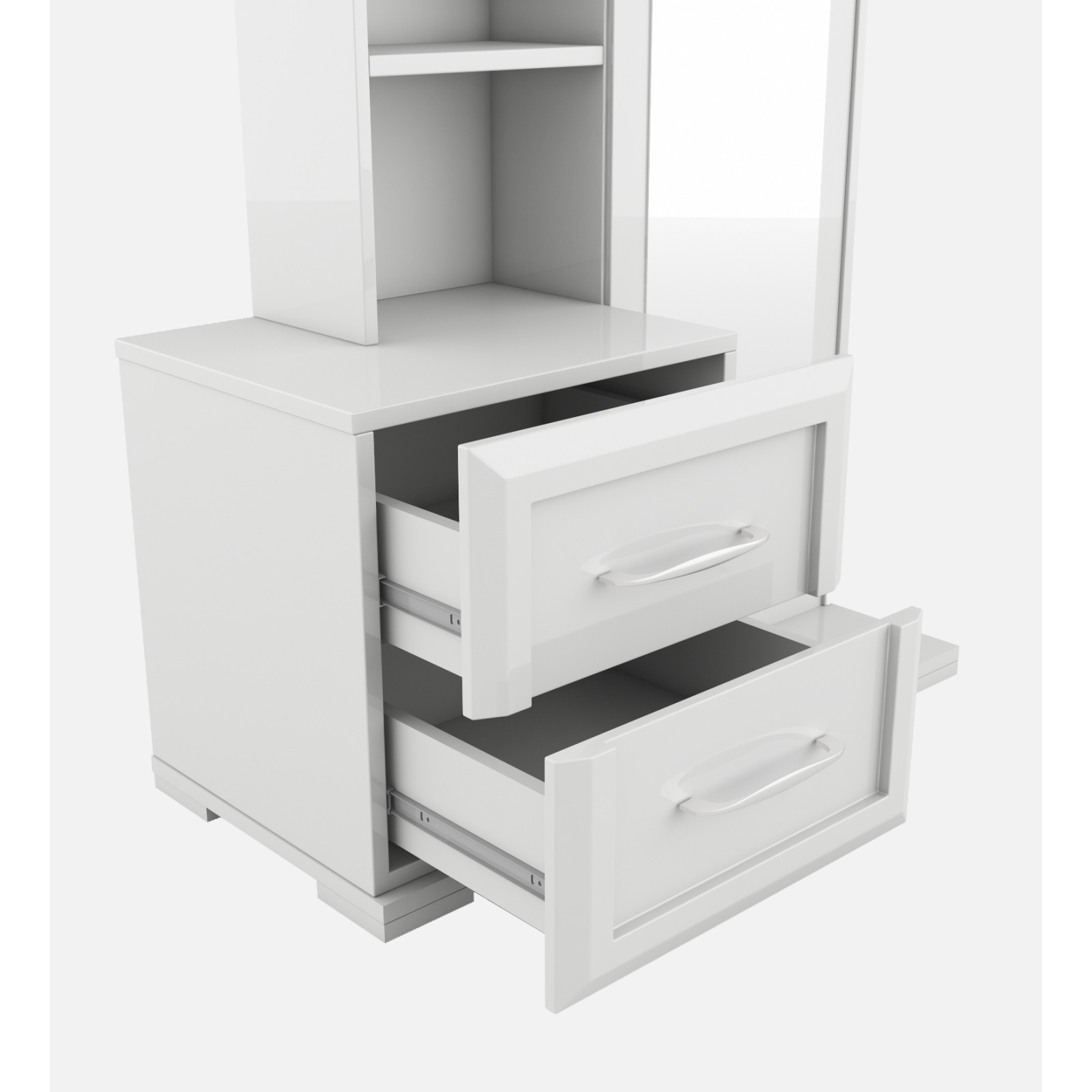 - Arctic Dresser - High Gloss White is a seamless combination of utility and aesthetics, designed to elevate your personal grooming space. Featuring a sleek mirror, spacious drawers, and an ergonomic layout, it offers ample storage for cosmetics, accessories, and essentials.