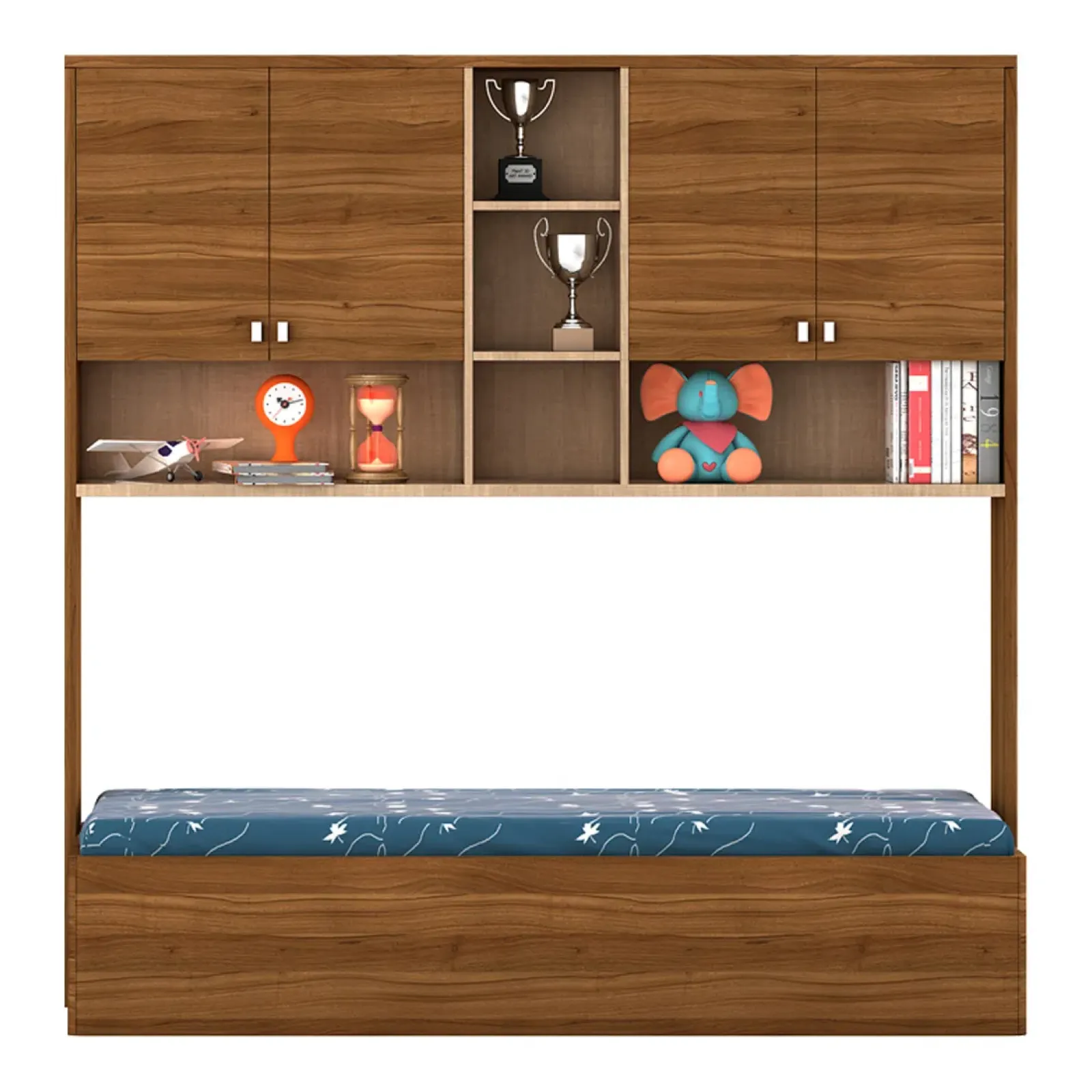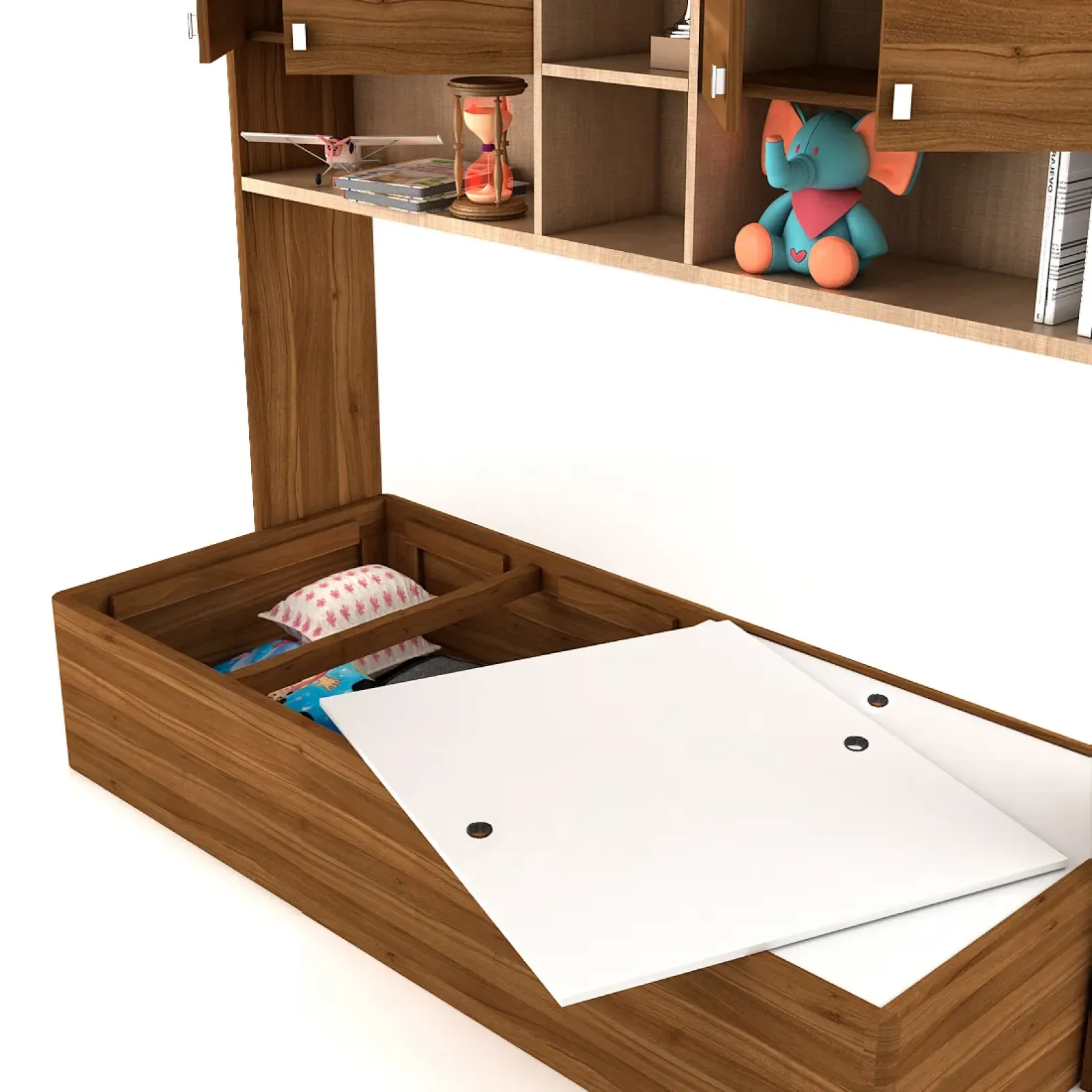 Oscar Single Bed With Wall Storage - Natural Teak
