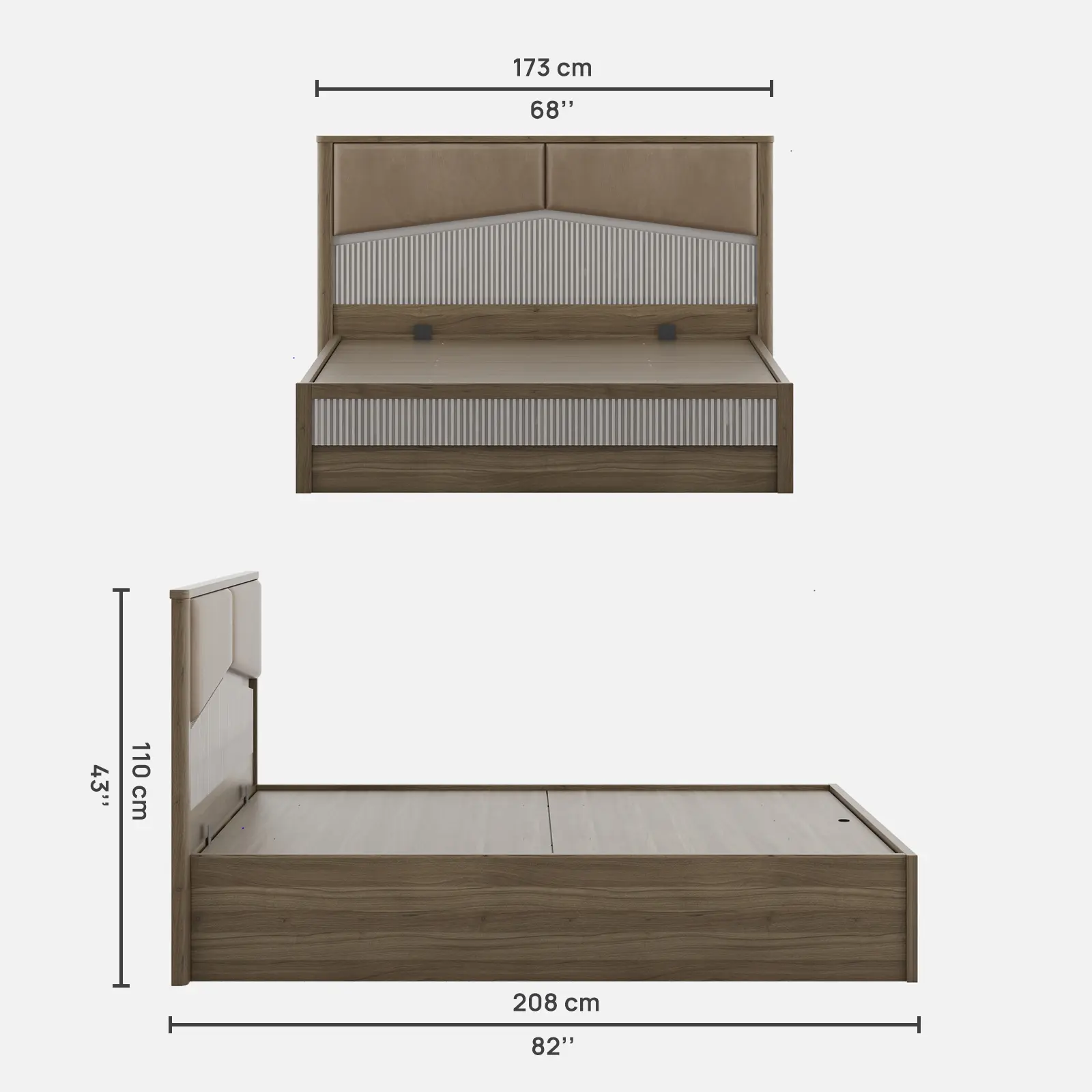 Nora Queen Bed Full Lift On With Top Plank - Lyon Walnut