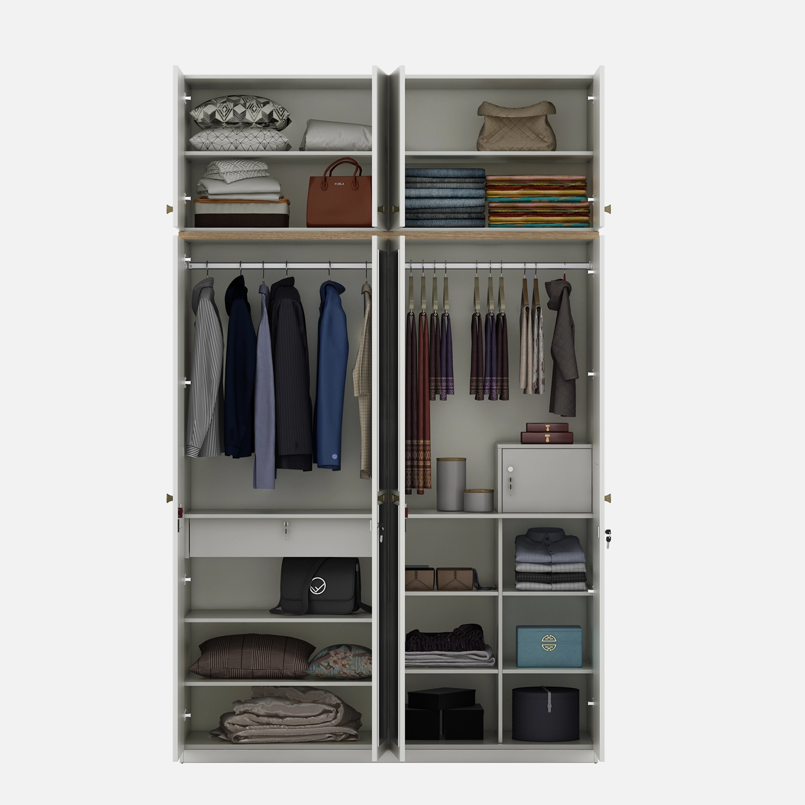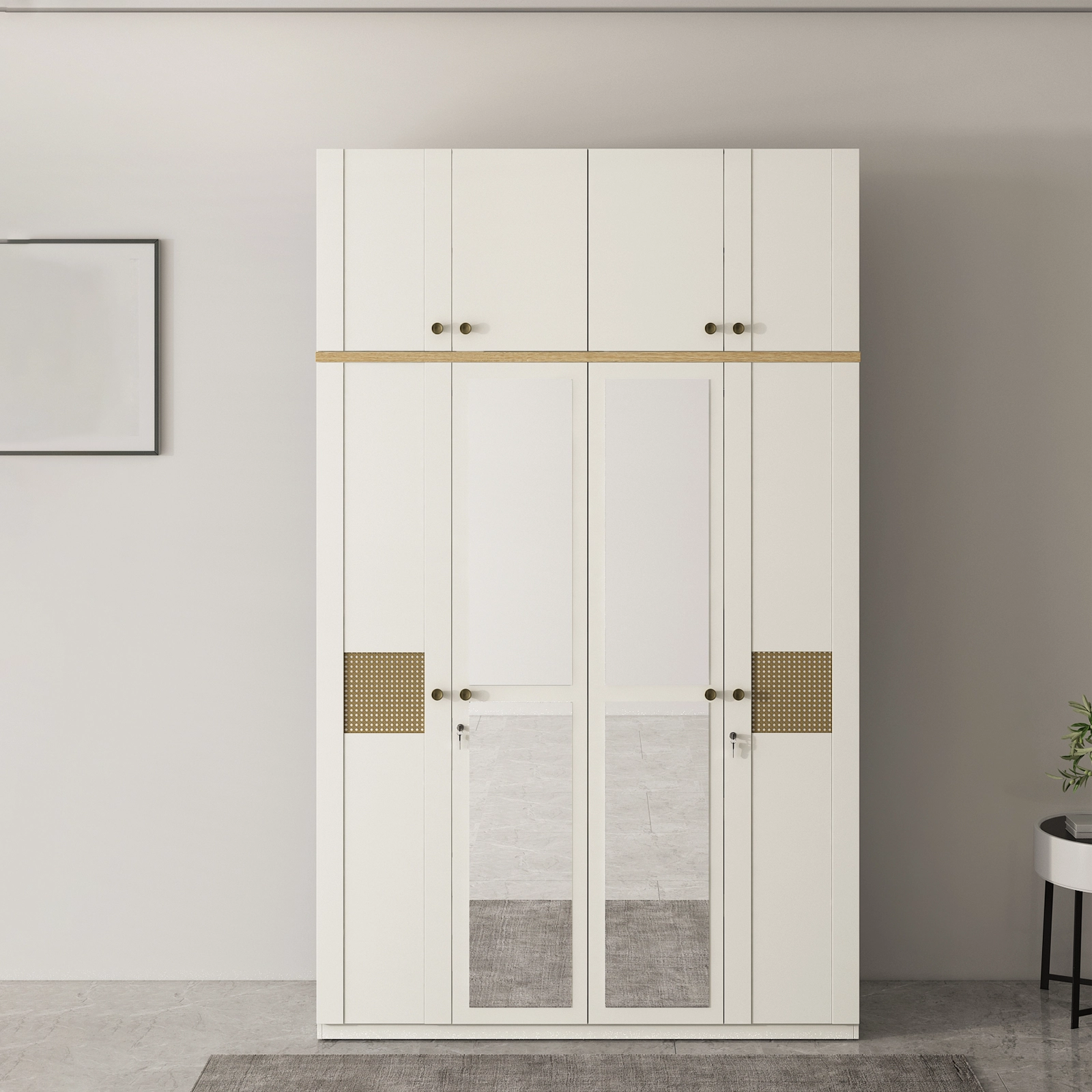 - LILLY 4 DOOR WARDROBE MIRROR WITH LOFT - KINGSTON WHITE is the perfect combination of style, practicality, and modern elegance. Designed to optimize your storage space while enhancing your bedroom decor, this wardrobe offers a spacious interior with ample room for clothing, accessories, and more.