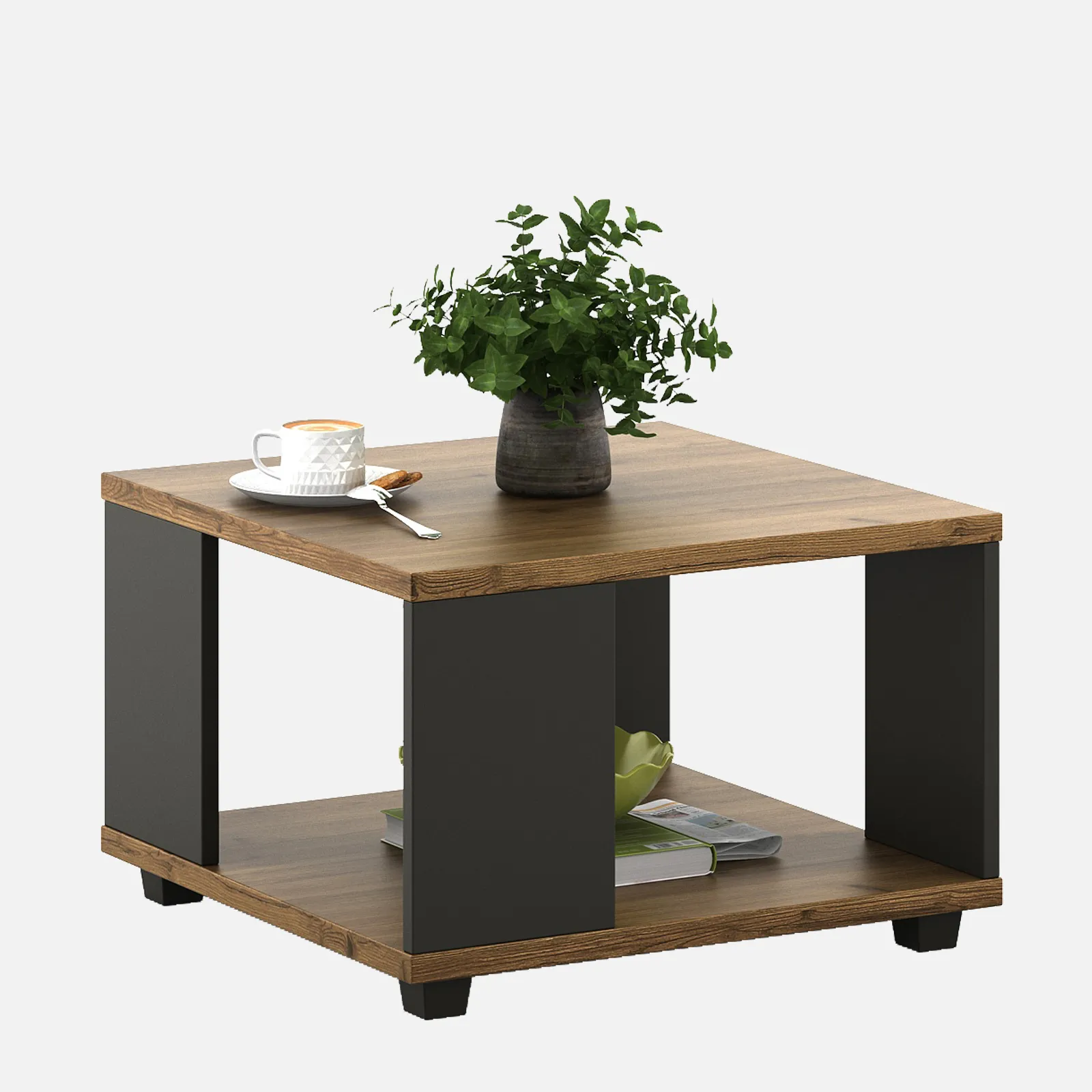 • The Kosmo Center Table combines modern aesthetics with durable engineered wood, finished in Classic Oak & Slate Grey for a sophisticated touch.