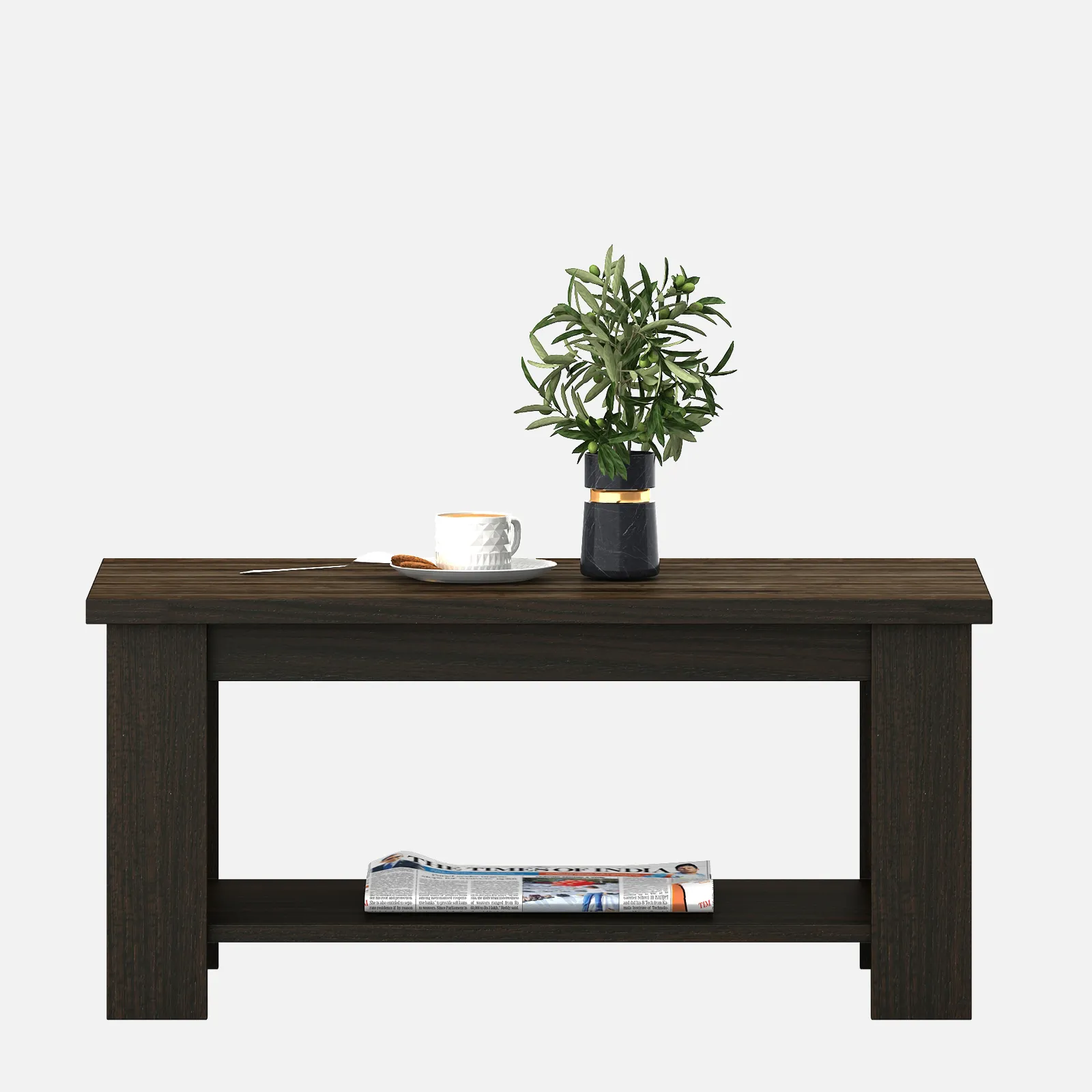 - The Kosmo Center Table combines modern aesthetics with durable engineered wood, finished in Fumed Oak & Vintage Wood for a sophisticated touch.