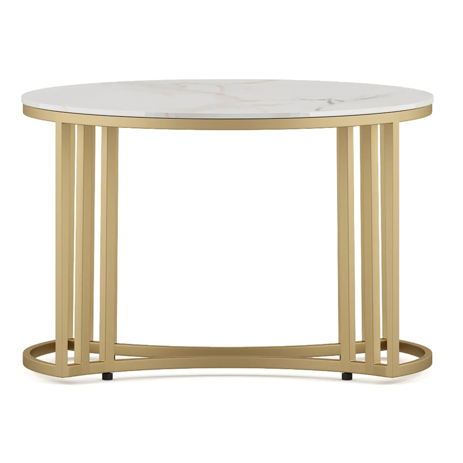 Center Table Derby Round Shape With Ceramic Top And Metal Under Stucture In Gold