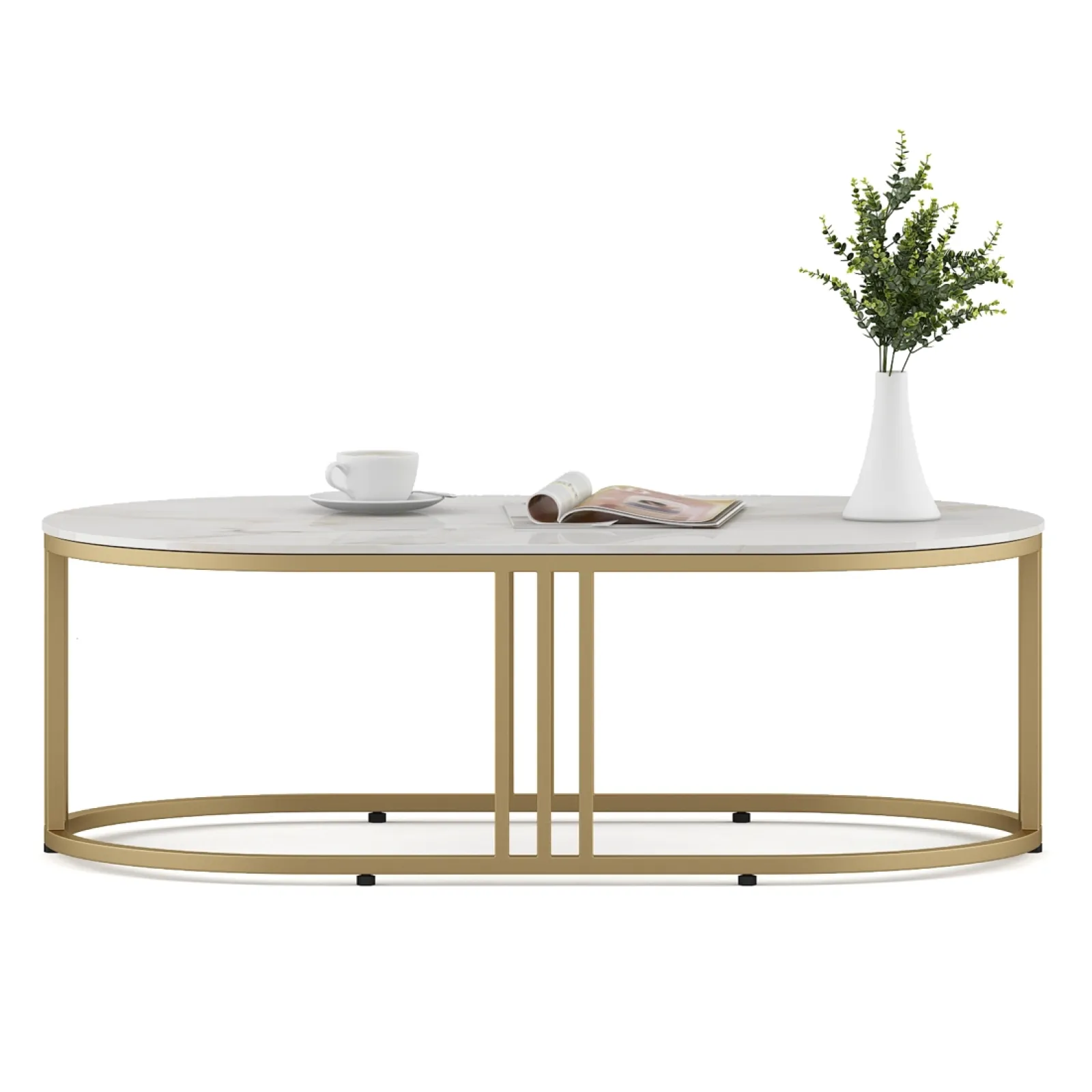 - Center Table Derby Oval Shape With Ceramic Top And Metal Under Stucture In Gold - Non Cl Sensitive