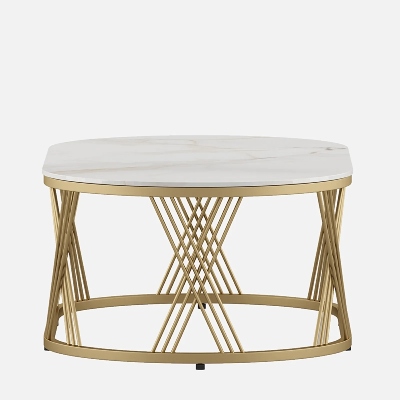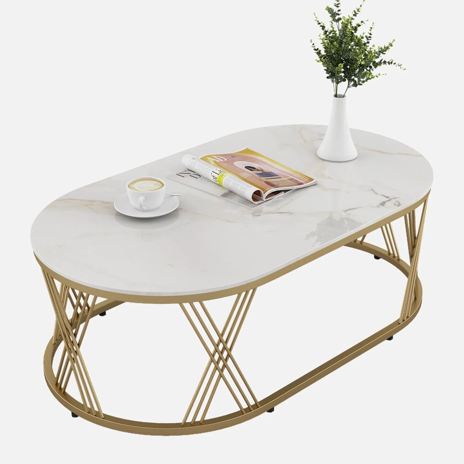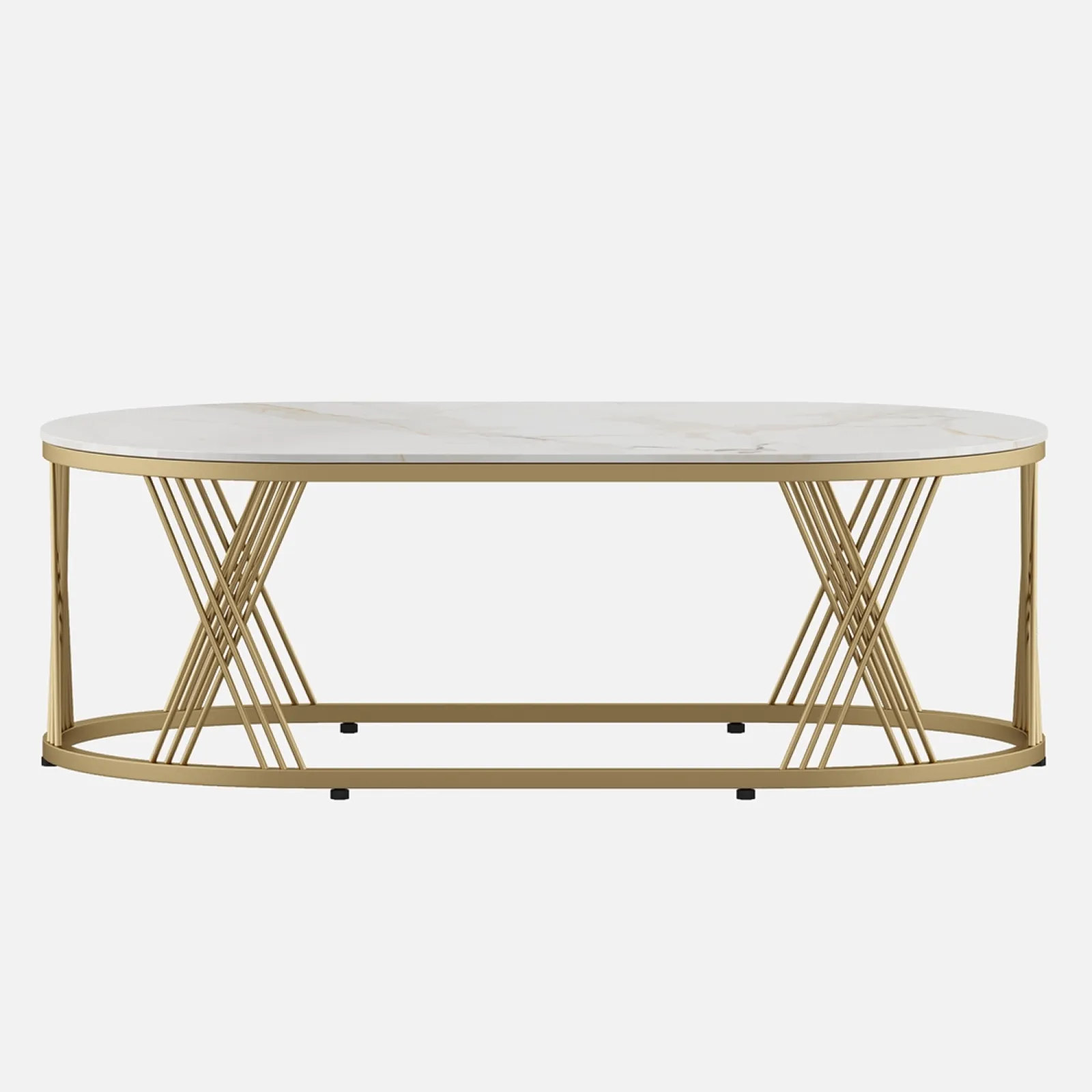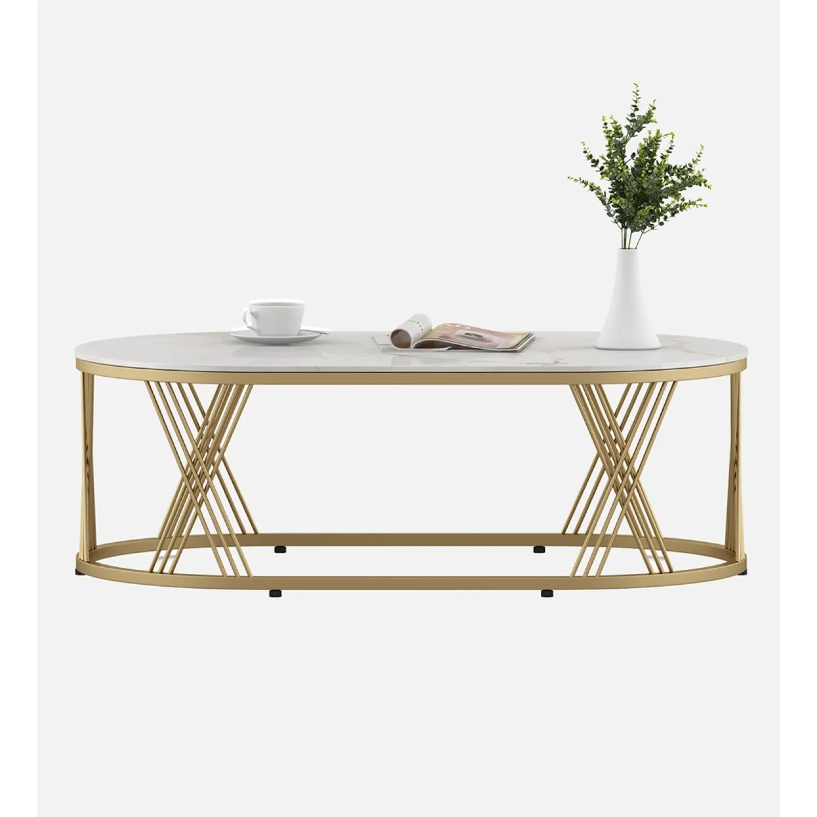 Center Table Roger Oval With Ceramic Top And Metal Under Structure In Gold
