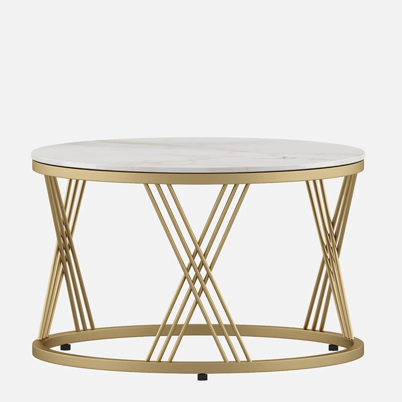 - Center Table Roger Round Short With Ceramic Top And Metal Under Structure In Gold