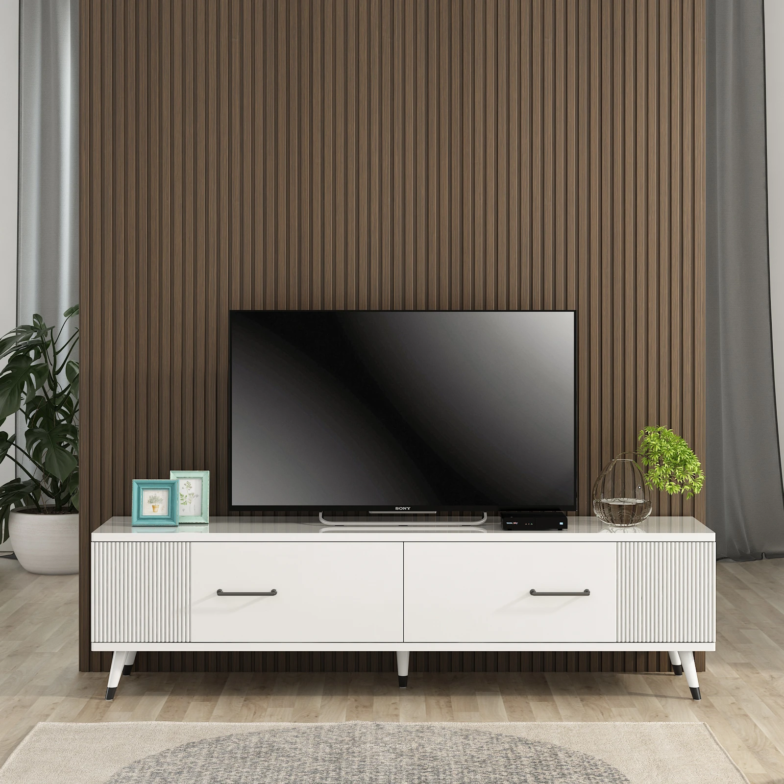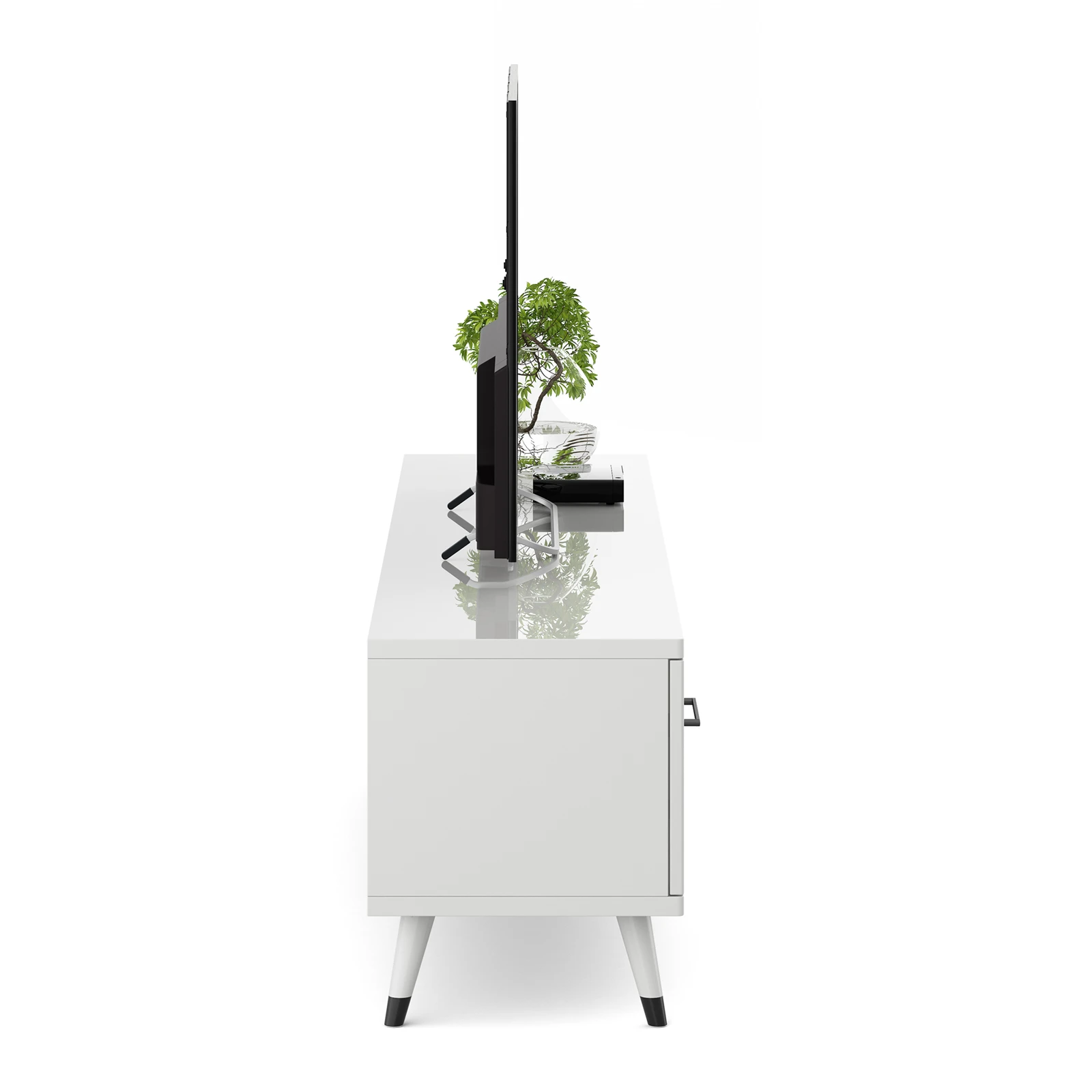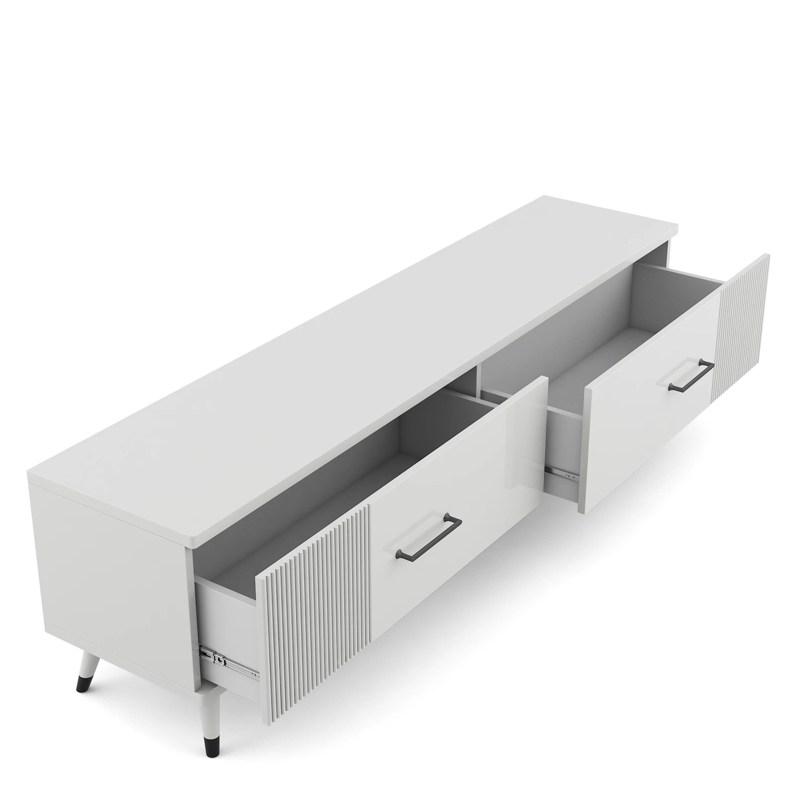 • Alpine Base TV Unit in High Gloss White is the ideal combination of fashion and functionality. Its sleek, minimalist style and generous storage for media devices, accessories, and other items make it a great addition to contemporary decor. It is a classic addition to your living area because of its sleek finish and simple lines, which provide a touch of luxury.