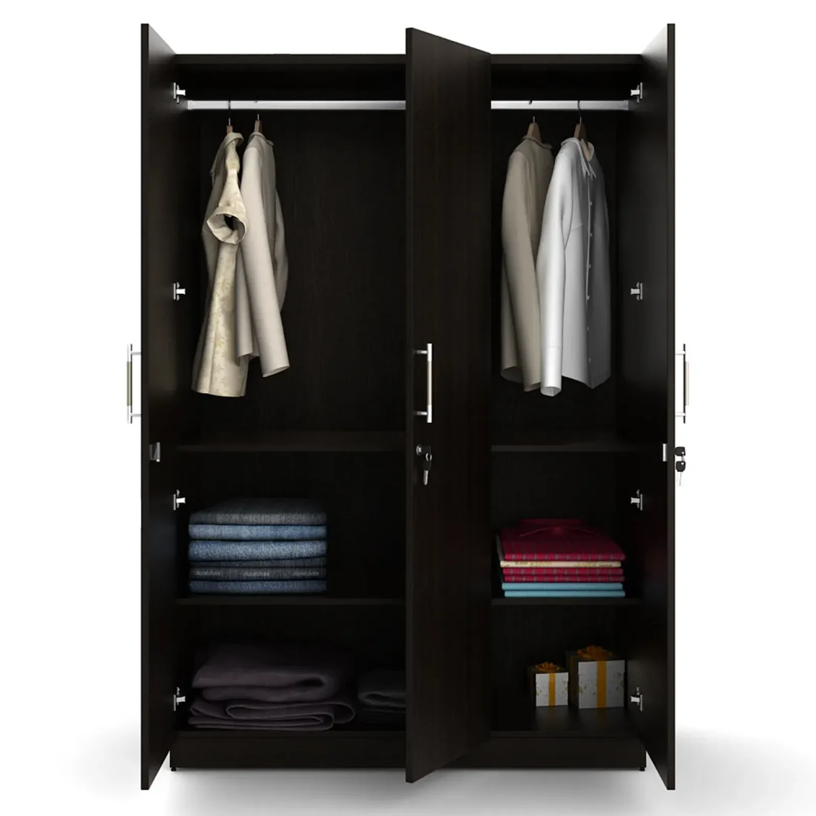 - Optima 3 Door Wardrobe - Natural Wenge is designed for those who seek functionality with a touch of elegance. It features dedicated shelves, a hanging section, and an ergonomic design to keep your belongings neatly arranged. Made from durable materials, it seamlessly fits into small to medium-sized rooms, enhancing both storage and décor.