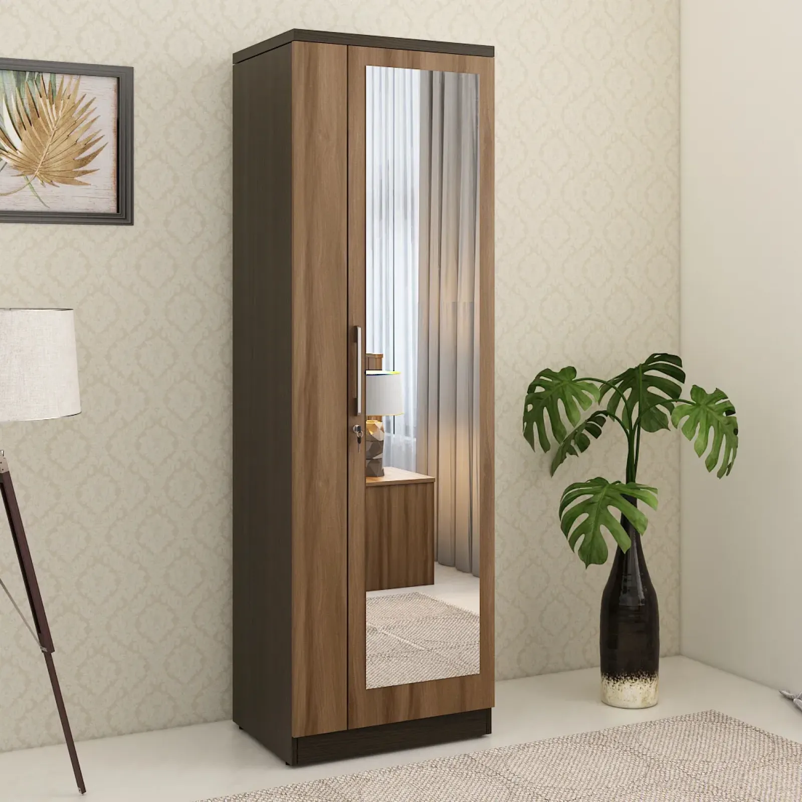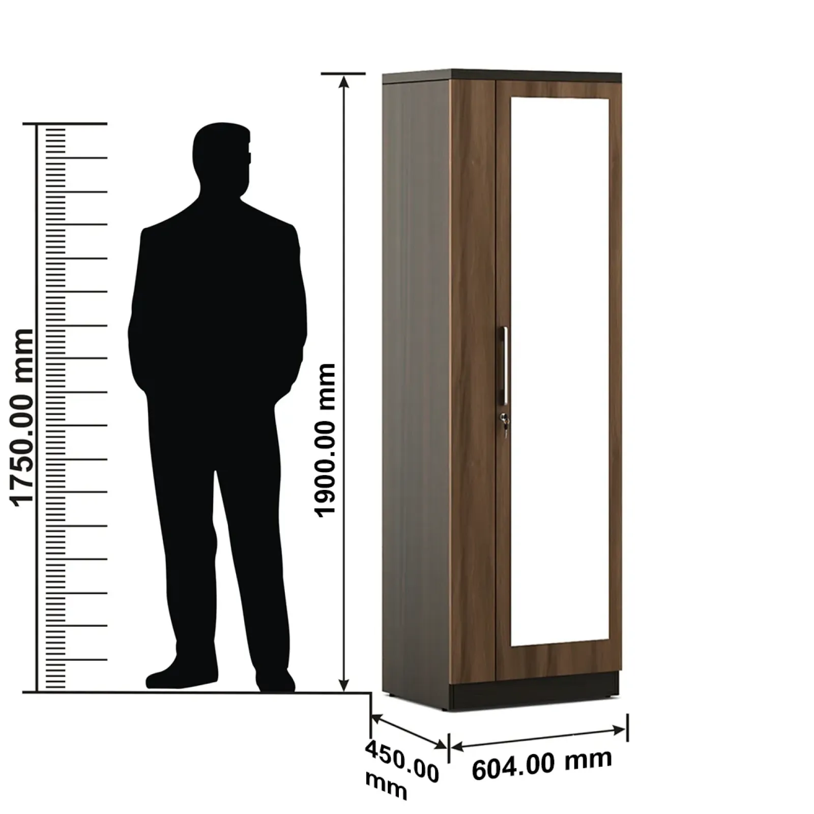 Ken 1 Door Wardrobe With Mirror - Walnut Bronze Woodpore
