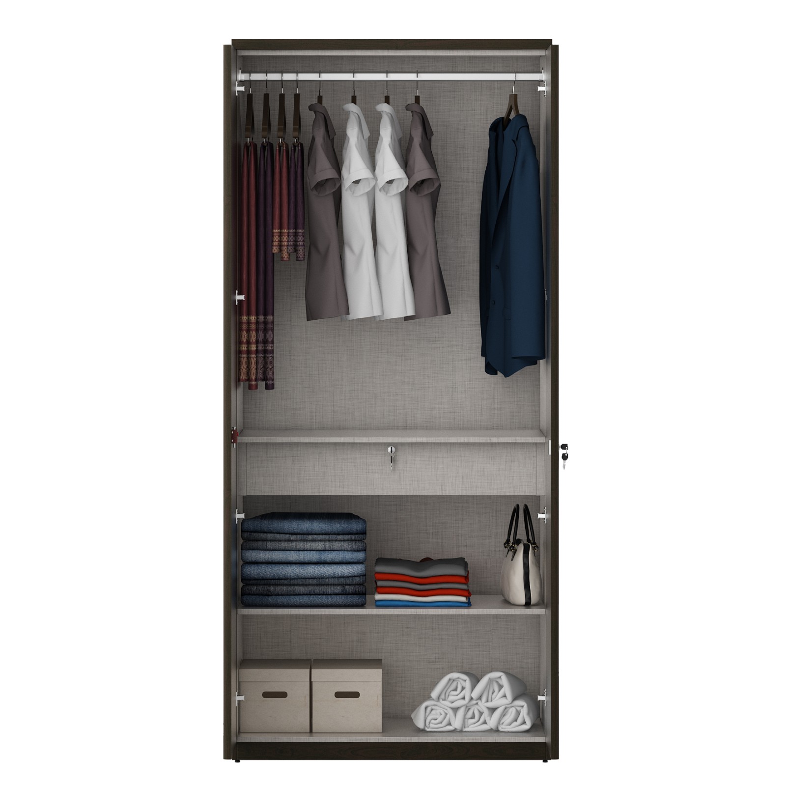 - Harmony 2 Door Wardrobe Without Mirror - Vermount - Woodpore is a sleek and functional storage unit designed to offer ample space for organizing clothes, accessories, and personal belongings while maintaining a stylish aesthetic. This wardrobe type is ideal for small to medium-sized rooms, providing an optimal balance between compact design and spacious storage.