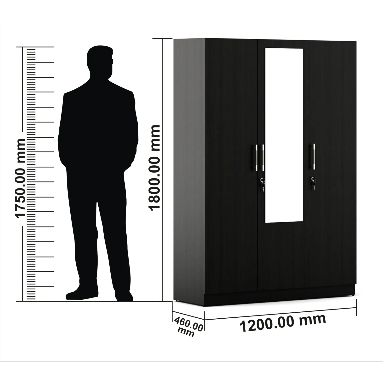 - A perfect blend of style and functionality, Optima 3 Door Wardrobe With Mirror - Natural Wenge Woodpore is designed to maximize storage without compromising on aesthetics. It features spacious shelves, a dedicated hanging section, and smooth-opening doors for easy access. Made with durable materials, it offers longevity while complementing modern home décor.