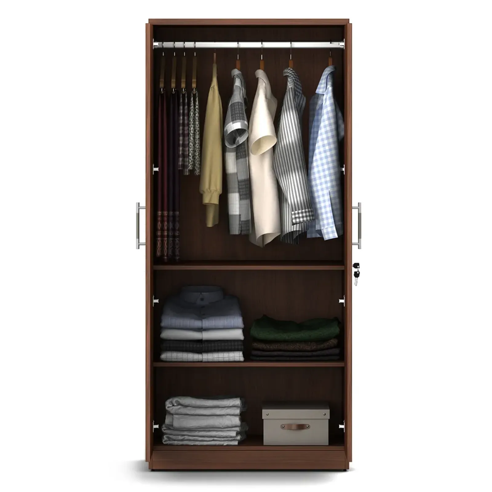 - Optima 2 Door Wardrobe - Walnut Rigato is a timeless piece that combines elegance with practicality. Designed to maximize space, it features a well-structured interior with multiple compartments for clothing and accessories. Crafted from high-quality materials, it ensures durability and seamless functionality. Perfect for modern homes, this wardrobe blends effortlessly with any décor style.