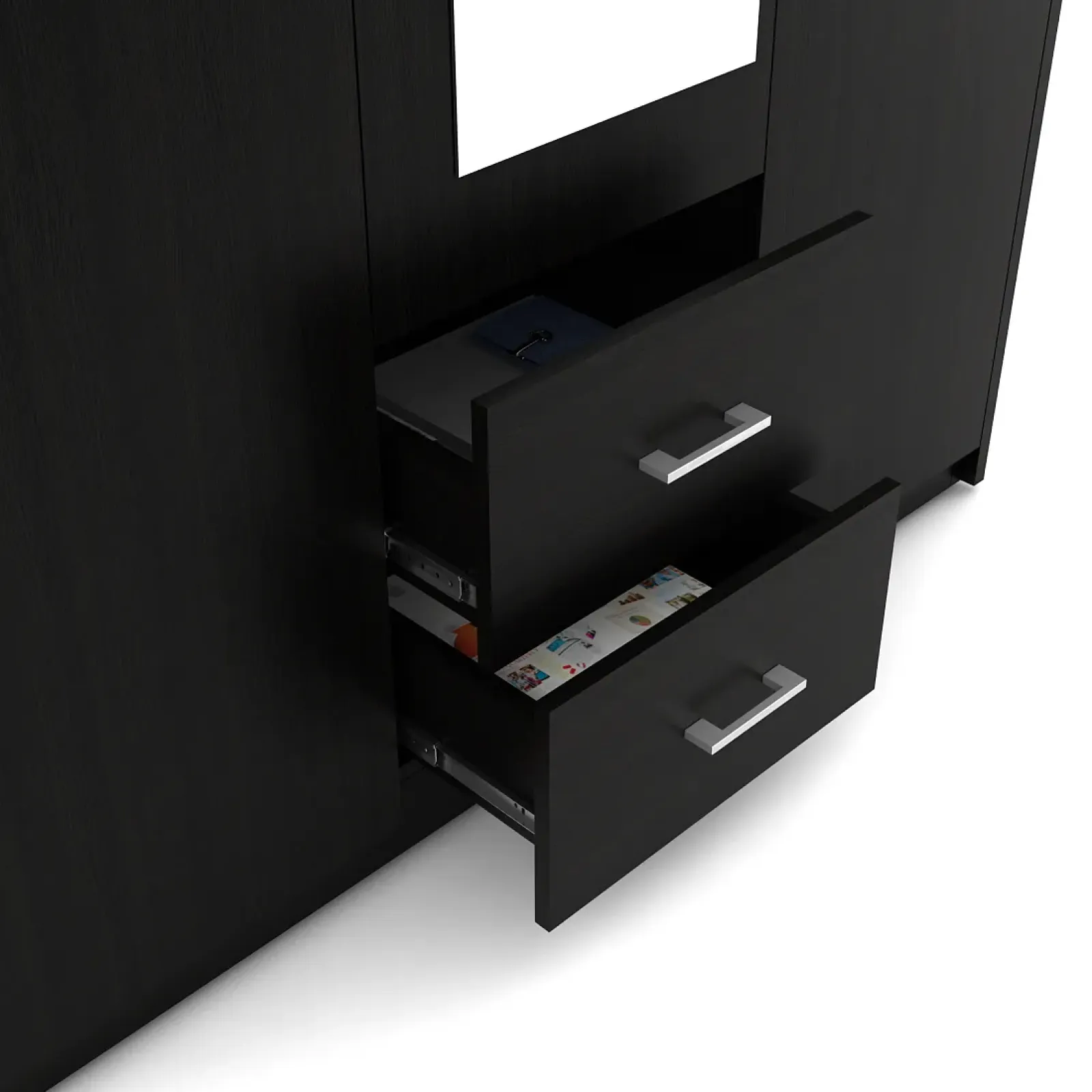 - Value V2 3-door Dresser Wardrobe - Natural Wenge is a seamless combination of utility and aesthetics, designed to elevate your personal grooming space. Featuring a sleek mirror, spacious drawers, and an ergonomic layout, it offers ample storage for cosmetics, accessories, and essentials.