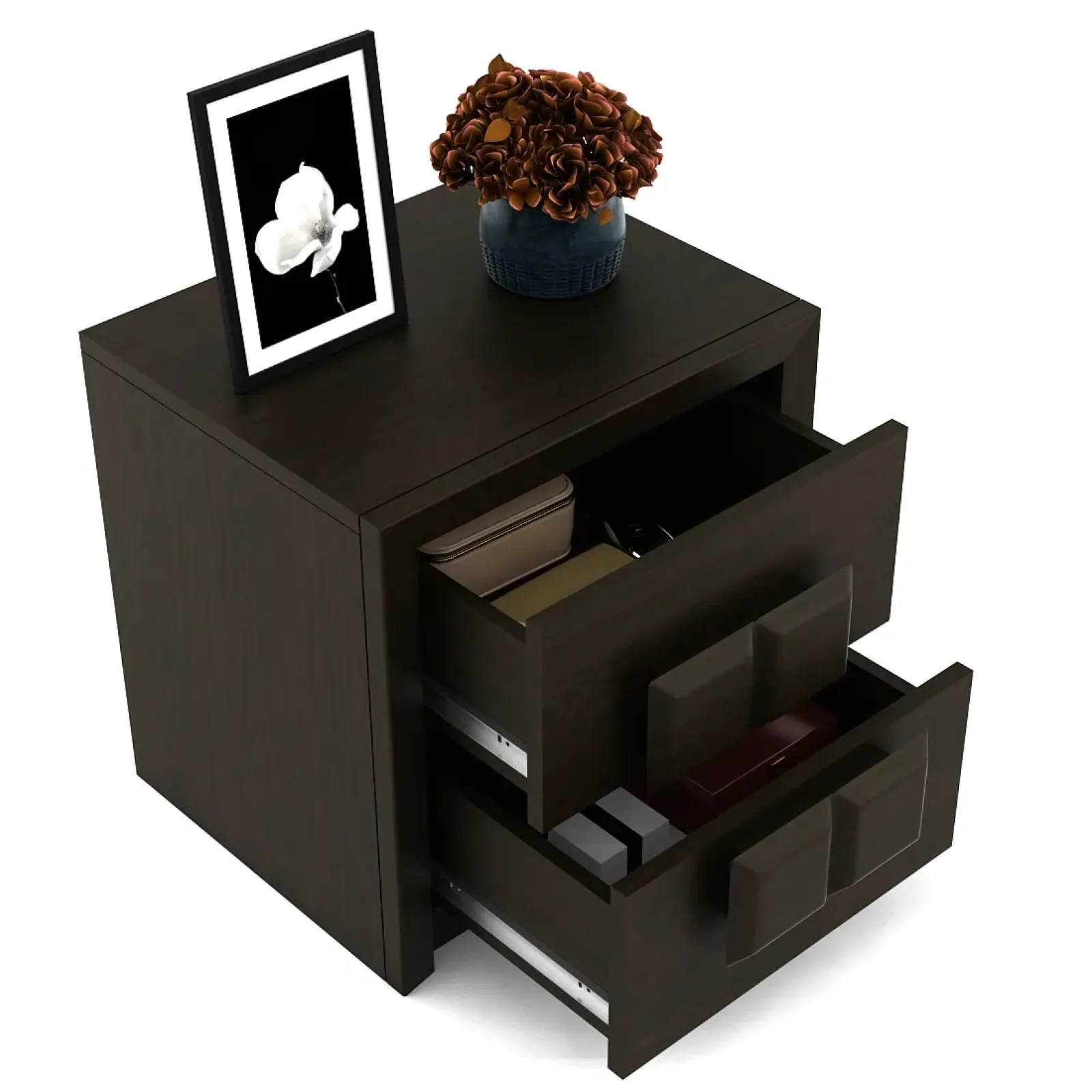 - Choco Bedside Table - Vermont is a compact and functional addition to your bedroom, designed to keep your essentials within arm’s reach. Featuring a sturdy build, smooth finish, and practical storage options like drawers or shelves, it’s perfect for books, gadgets, or night-time necessities