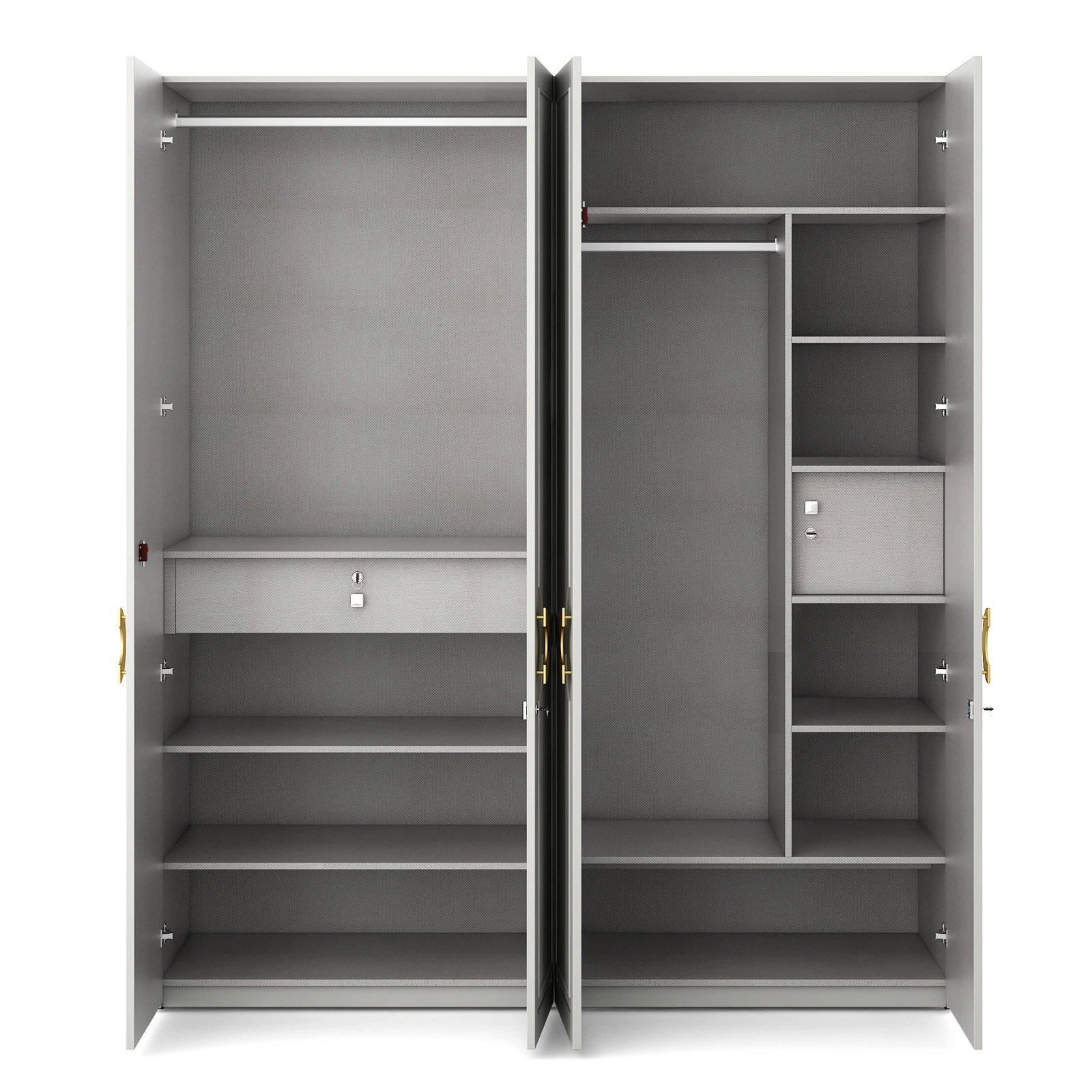 - Akira 4 Door Wardrobe without mirror- Pumic Grey is the perfect combination of style, practicality, and modern elegance. Designed to optimize your storage space while enhancing your bedroom decor, this wardrobe offers a spacious interior with ample room for clothing, accessories, and more.