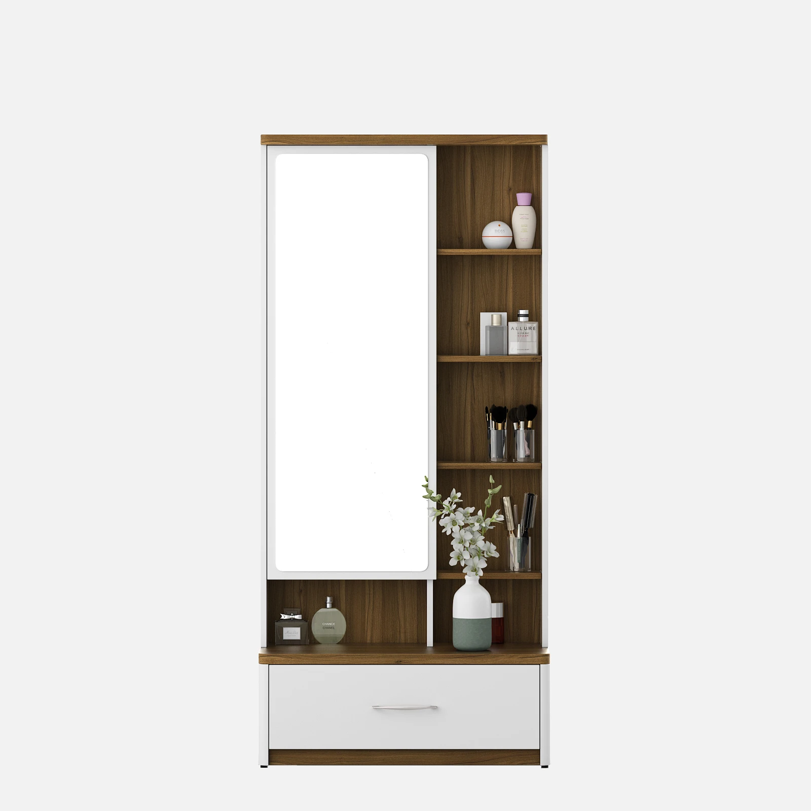 - Jupiter Dresser - High Gloss White is a seamless combination of utility and aesthetics, designed to elevate your personal grooming space. Featuring a sleek mirror, spacious drawers, and an ergonomic layout, it offers ample storage for cosmetics, accessories, and essentials.