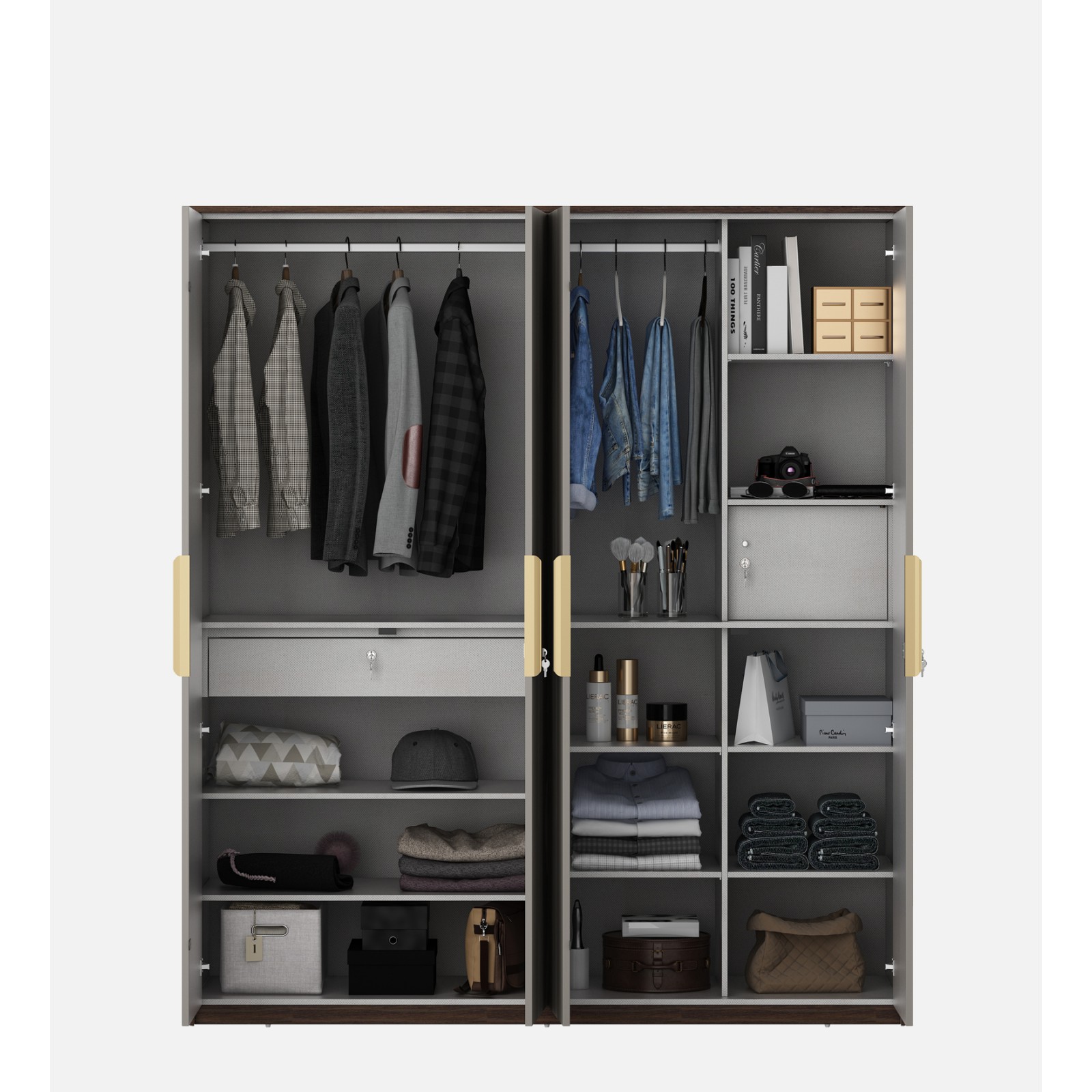 - ADORE 4 DOOR WARDROBE-SAHARA BEIGE & DARK BROWN EUCALYPTUS is the perfect combination of style, practicality, and modern elegance. Designed to optimize your storage space while enhancing your bedroom decor, this wardrobe offers a spacious interior with ample room for clothing, accessories, and more.