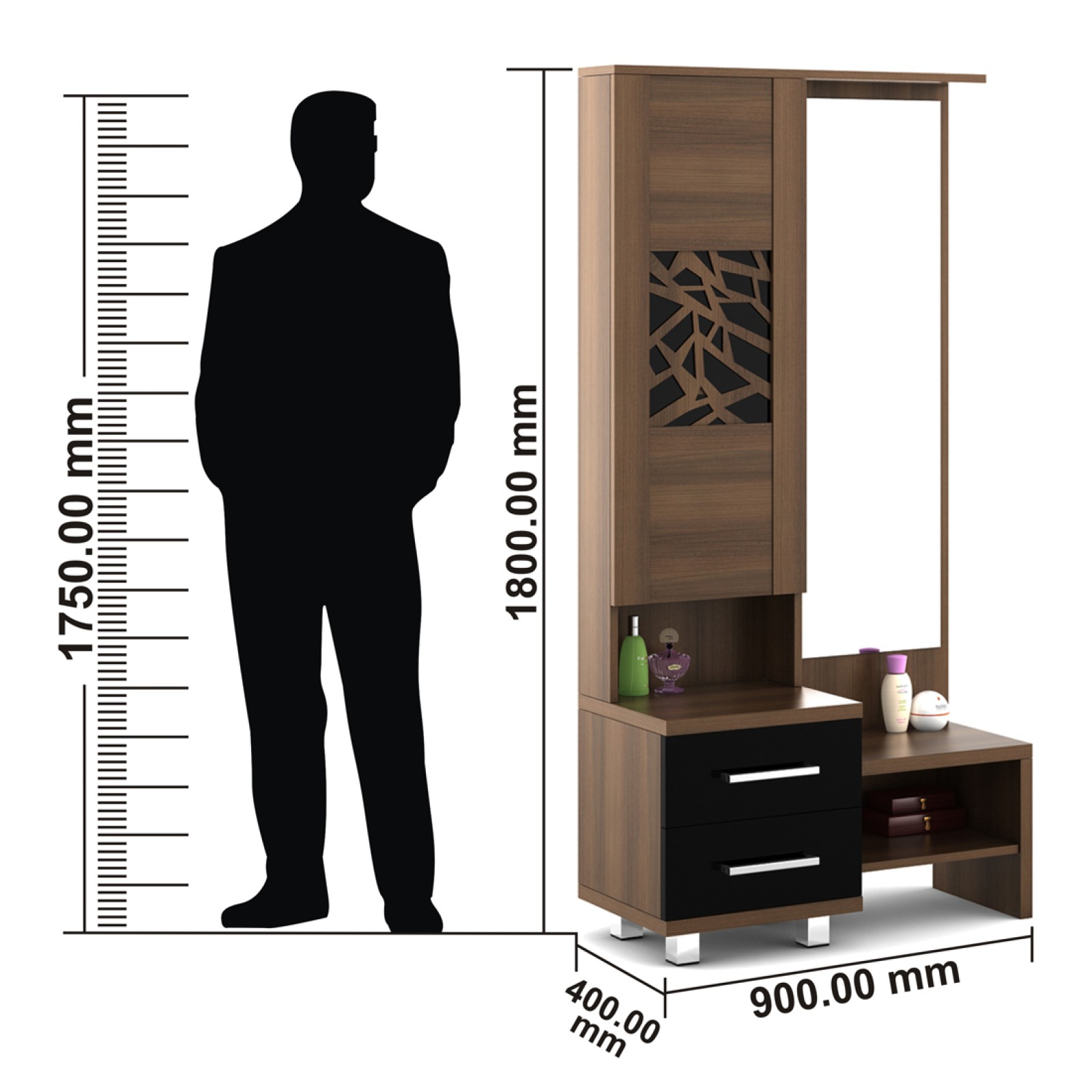 Dimensions Width : 900 mm, Length : 400 mm, Height : 1800 mm