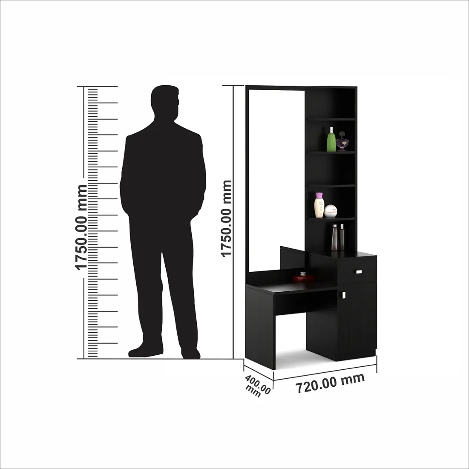 • Premium Dressing Table - Natural Wenge is a seamless combination of utility and aesthetics, designed to elevate your personal grooming space. Featuring a sleek mirror, spacious drawers, and an ergonomic layout, it offers ample storage for cosmetics, accessories, and essentials.